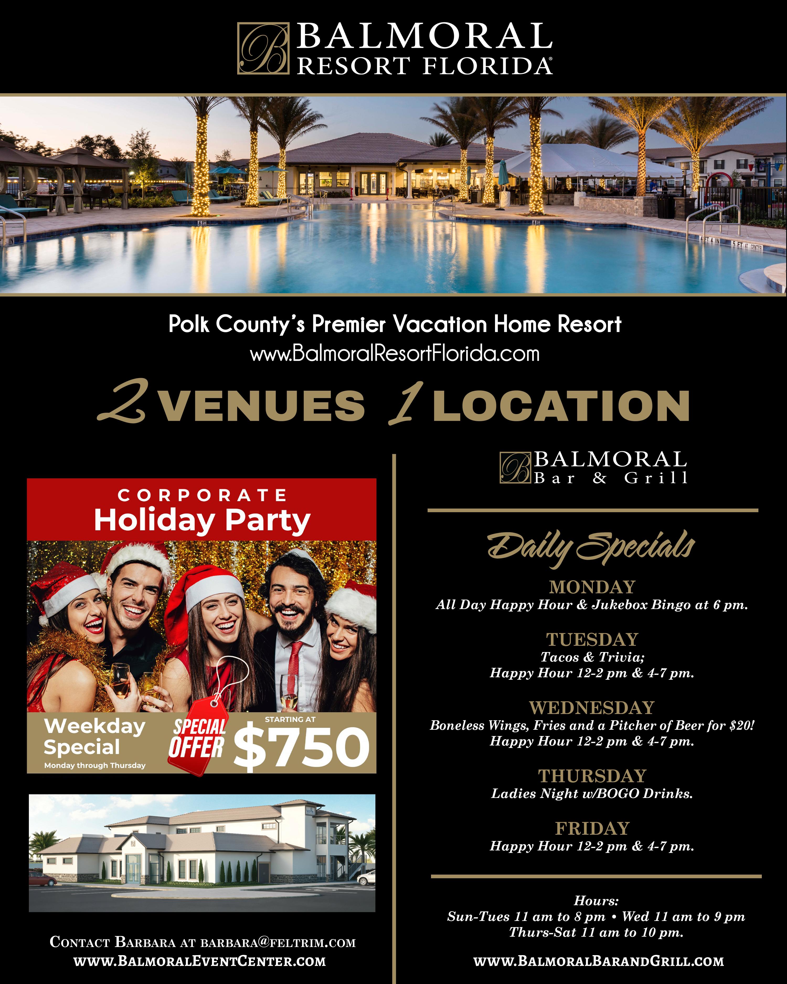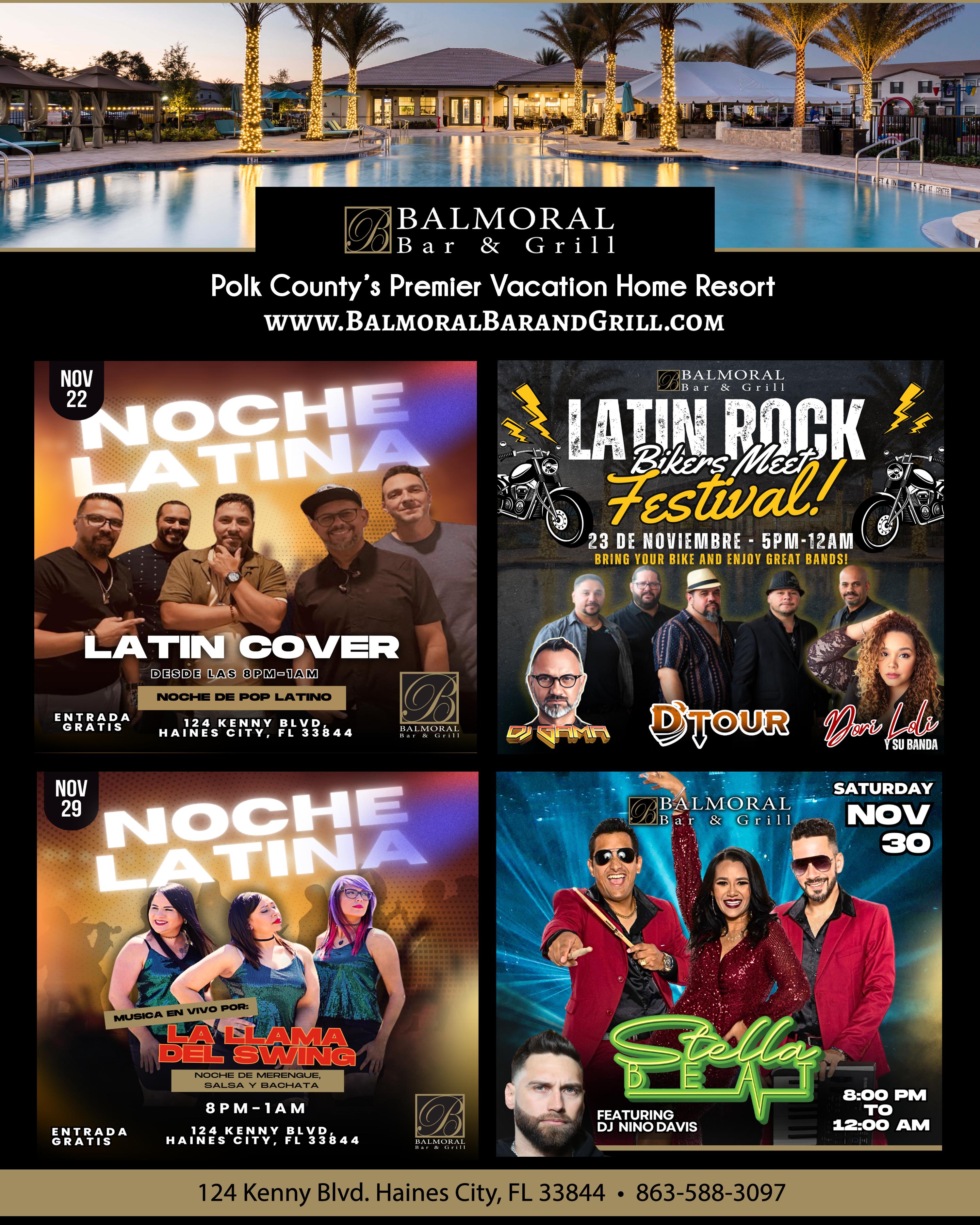 124 Kenny Blvd, Haines City (off Hwy 27) (863) 588-3097 • BalmoralBarandGrill. com