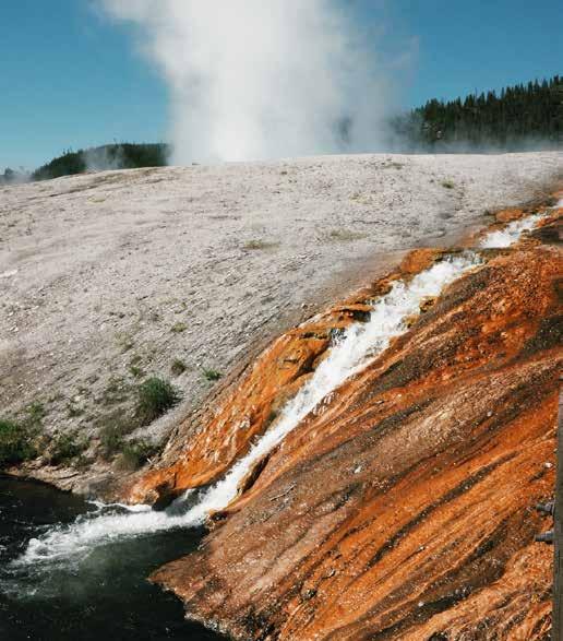 We continued north to explore the park’s geothermal wonders, from the vibrant Grand Prismatic Spring to the bubbling Excelsior Geyser Crater. We also fortuitously visited the Biscuit Basin’s Sapphire Pool, Black Diamond Pool, and Coral Geyser just one month before its July 23 hydrothermal explosion – now closed for the remainder of the season.