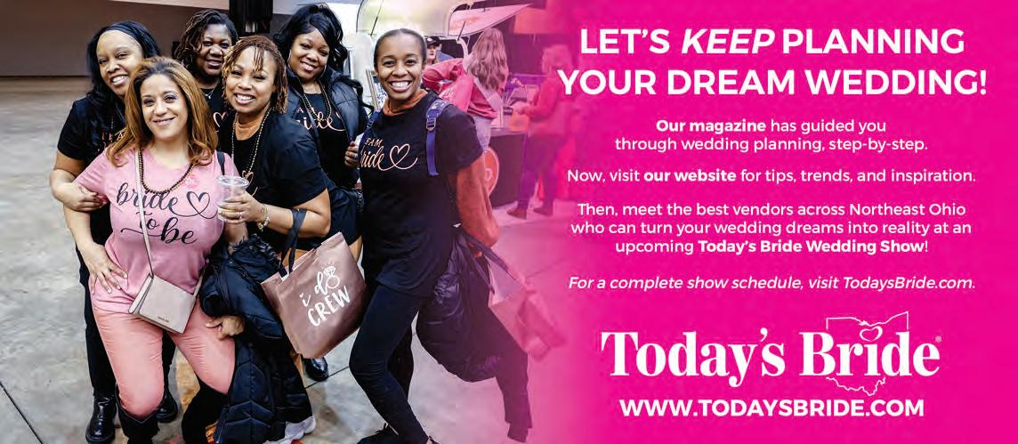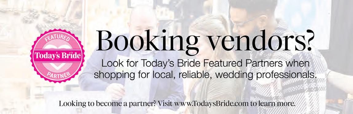 As I flip through the pages of this issue, I’m reminded why we’ve loved doing what we do for more than 35 years. It’s because of you. Every couple who picks up this magazine for inspiration, every vendor who partners with us to bring dream weddings to life, and every family member or friend cheering along the way—you’re the reason Today’s Bride continues to grow, evolve, and celebrate love in all its forms. For over three decades, our mission has stayed the same: to be your trusted local resource for wedding planning. From your first “yes!” to your final “I do,” we’re honored to walk beside you through every joyful, stressful, and magical step of the journey.