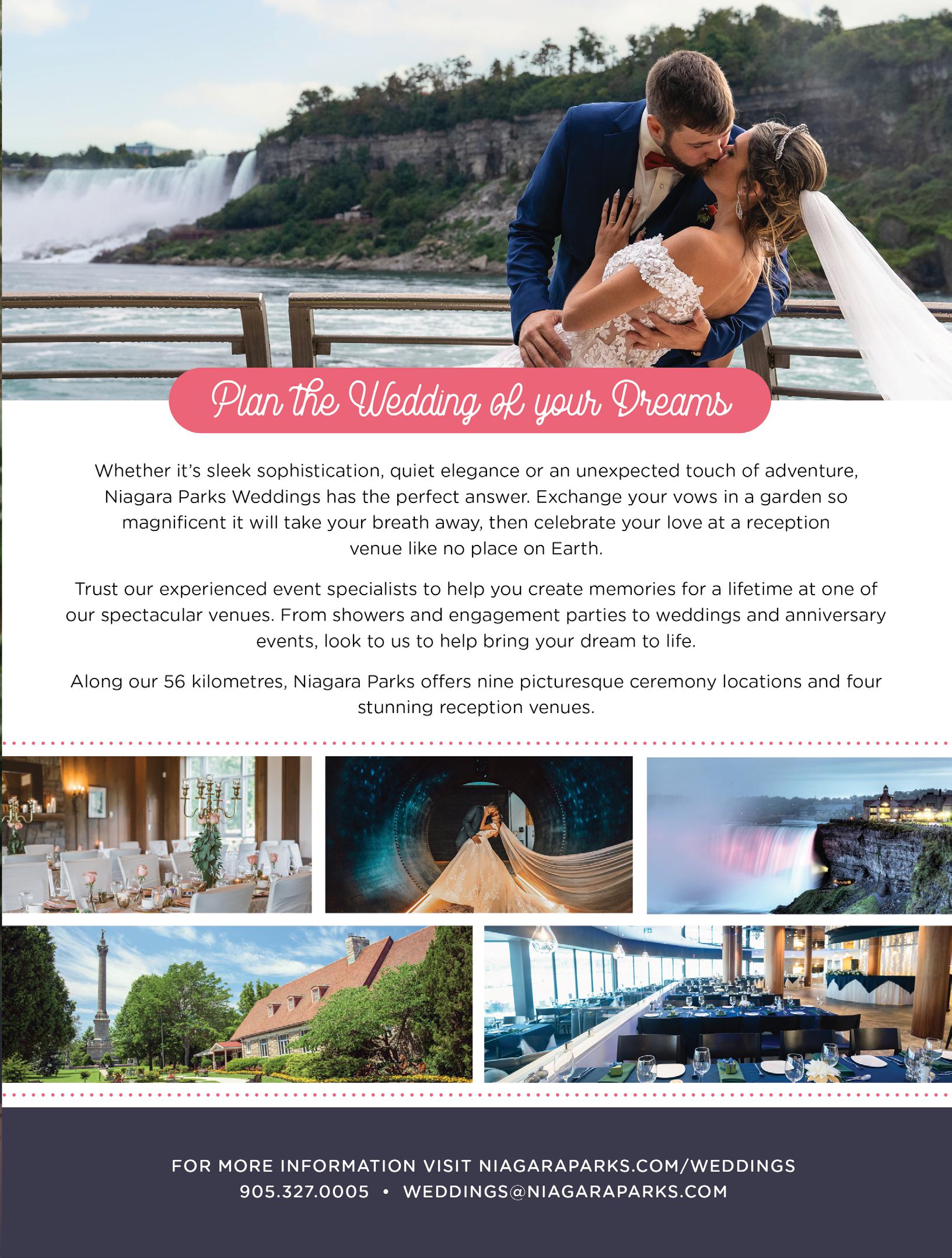Today’s Bride and its logotype is a registered trade name of The Travelweek Group. The publication is subject to copyright and may not be reproduced by any means without permission of the publisher. Today’s Bride is produced and distributed semi-annually. Publication available without charge through selected bridal outlets. Available at more than 3,000 newsstands across the country. The publishers cannot accept responsibility for unsolicited manuscripts or visual material.