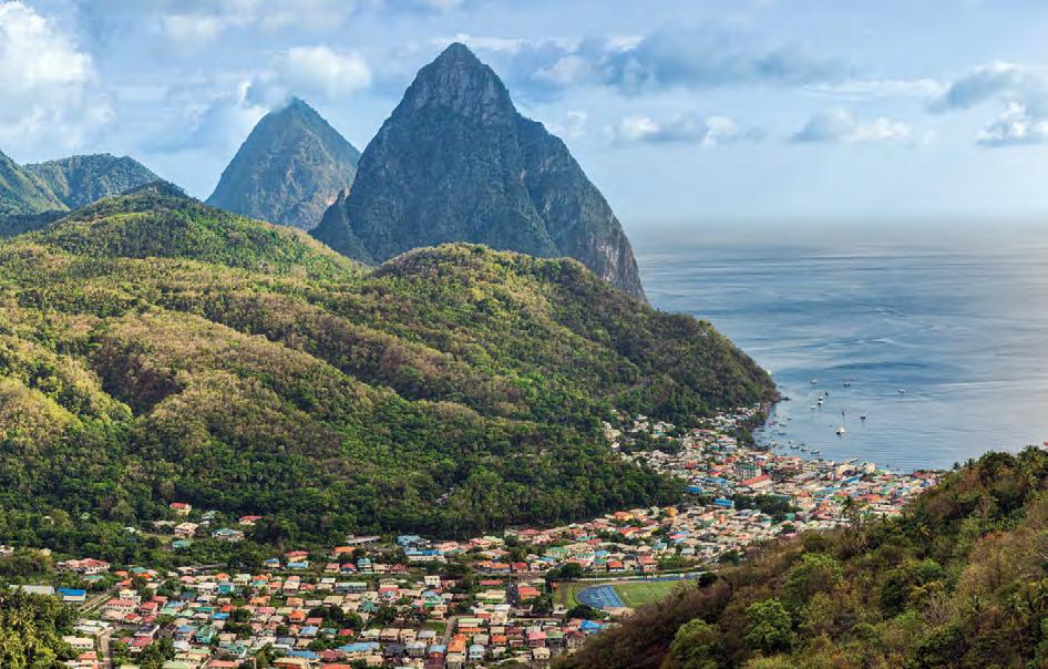Serenity's location makes exploring Saint Lucia's wonders e ortless. Imagine playing in mud baths at the world's only drive-in volcano, swimming under romantic waterfalls, or marveling at the UNESCO World Heritage Pitons.