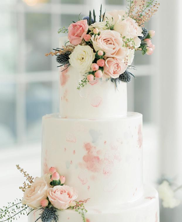 “Everything was impeccably chosen to match with our romantic, rustic style featuring greens, whites and rusty purples throughout.” Even the invitations, which Emily designed, were impeccable with letter pressing and gold foil features. “ e look and feel was cohesive throughout the venue and not a single detail was missed. I have a marketing and graphic design background, so I was quite meticulous making sure everything looked exactly how I had envisioned. As I always say, some little girls dream about their wedding dress, I dreamed about my invitations and decor to match.”