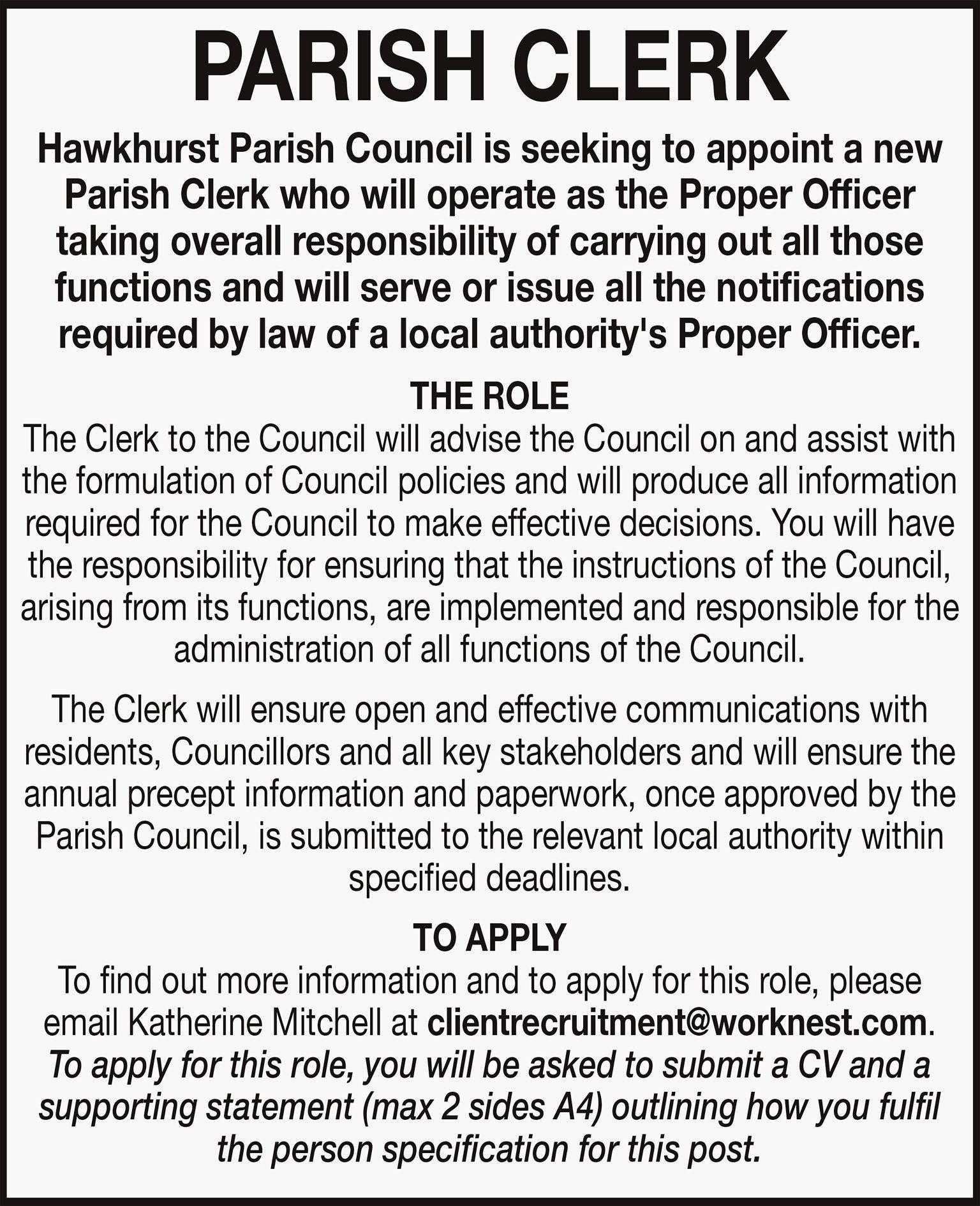 The post holder will also be responsible for ensuring the Council is up to date with policies, procedures, training, data protection compliance, the effective management of Council resources and produce all information required for Councillors to make effective and informed decisions at meetings, as well as being responsible for the proper administration of the Council’s financial affairs.