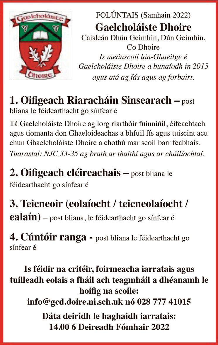 • The closing date for the receipt of applications is 12 Noon on Thursday 27th October 2022.