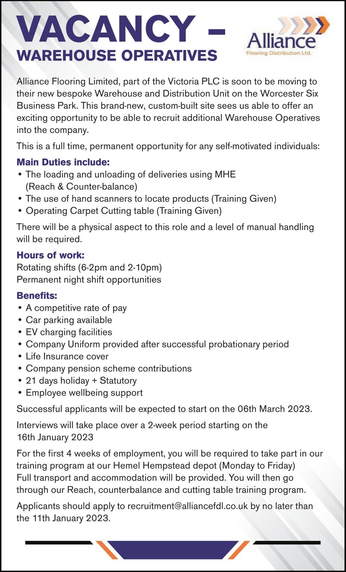 Successful applicants will be contacted on the week commencing 9 January 2023 Interviews will be held week commencing TBC