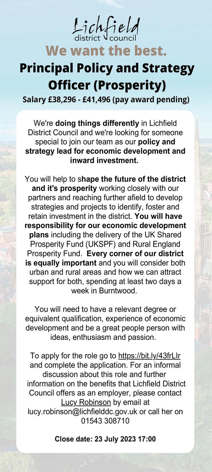 Closing date for applications: Thursday 27th July 2023.