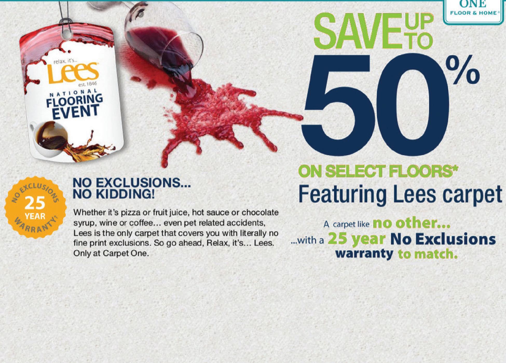 This coupon entitles purchaser $2.00 sq. yd. or 22¢ a sq. ft. discount off any regular priced floor covering up to 250 sq. yd. or 2,250 sq. ft. or $500. Prior sales excluded. See Store