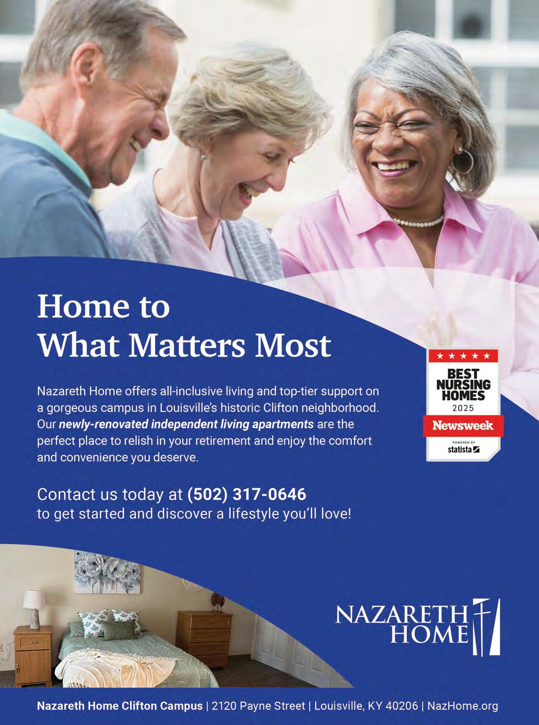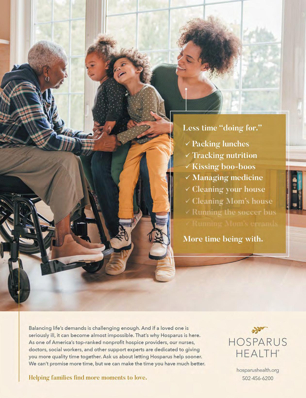 Find a directory of options for retirement living on page 48. Care community and home caregiving directories start on page 60. Search our directories online for caregiving and living options in Kentucky, Indiana, and Ohio at TodaysTransitions.com.