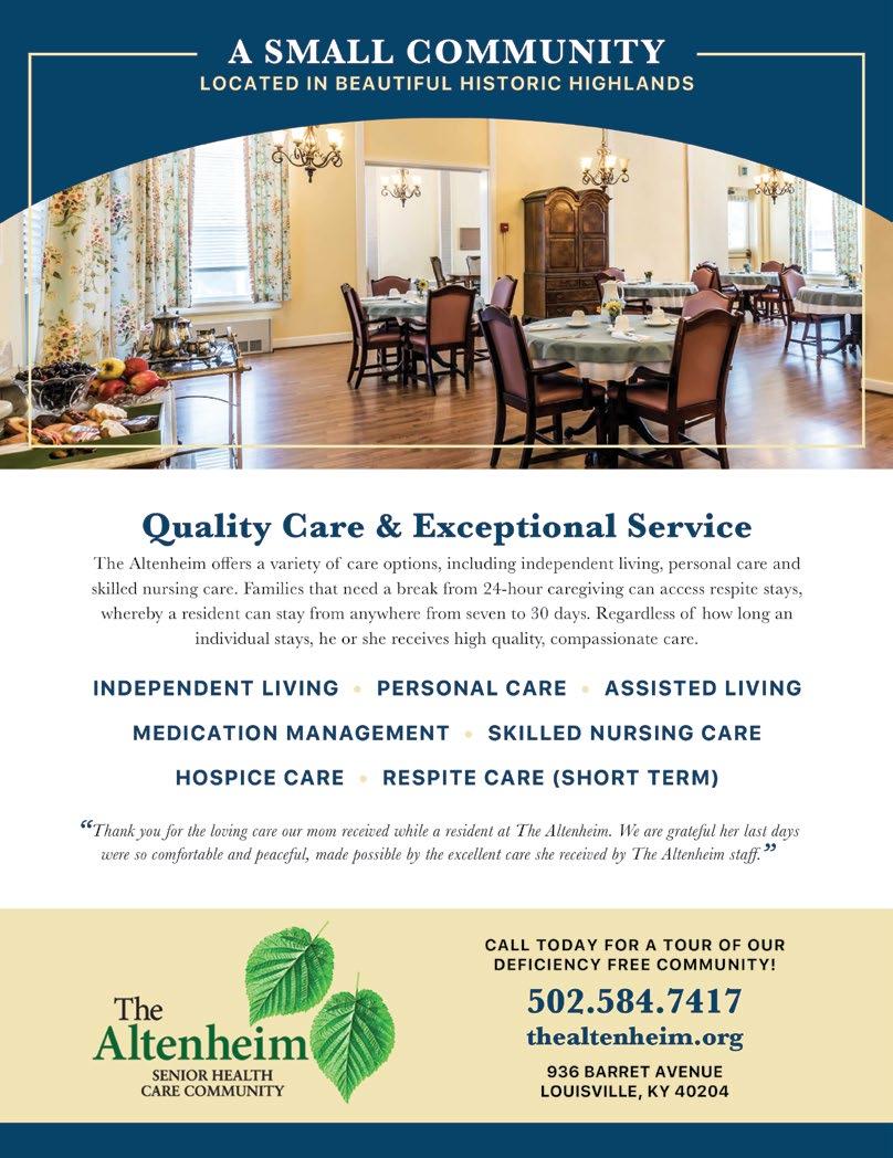 Trilogy Health Services offers a full range of senior living options, and with over 12 locations in the Louisville area, you’re sure to find a location near you that meets your needs.