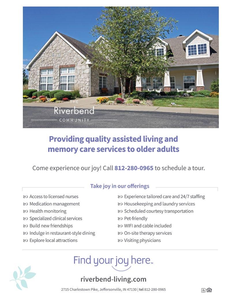 Live life stress-free at Riverbend, where amenities and convenient services make everyday living comfortable and exciting for older adults. In assisted living, you will find spacious studios and onebedroom apartments with patio options that lead to our beautiful courtyards. In Magnolia Trails, our specialized memory care, we offer a safe and secure environment tailored to the unique needs of seniors with dementia.