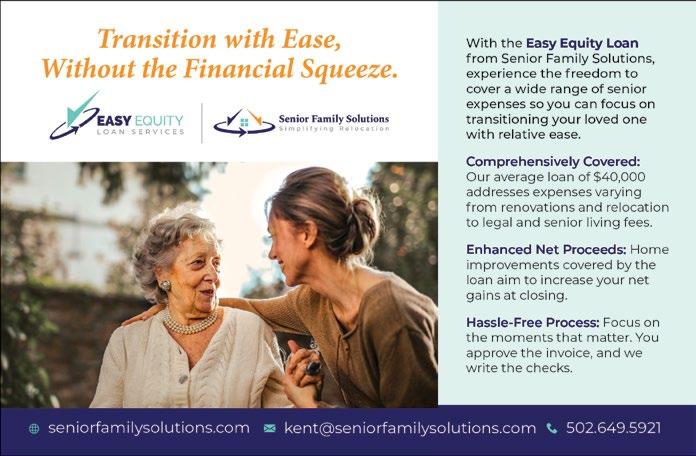 Find a directory of options for retirement living on page 48. Care community and home caregiving directories start on page 60. Search our directories online for caregiving and living options in Kentucky, Indiana, and Ohio at TodaysTransitions.com.