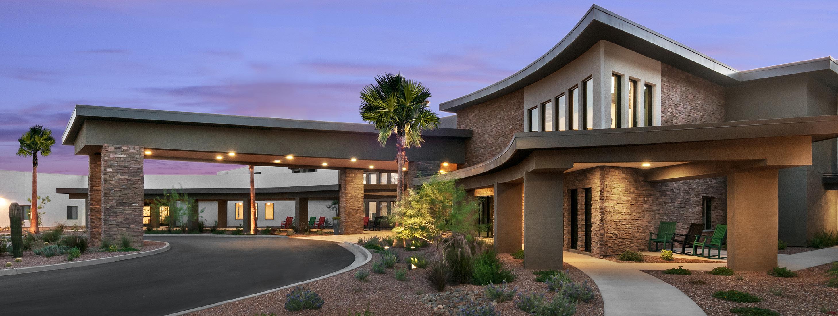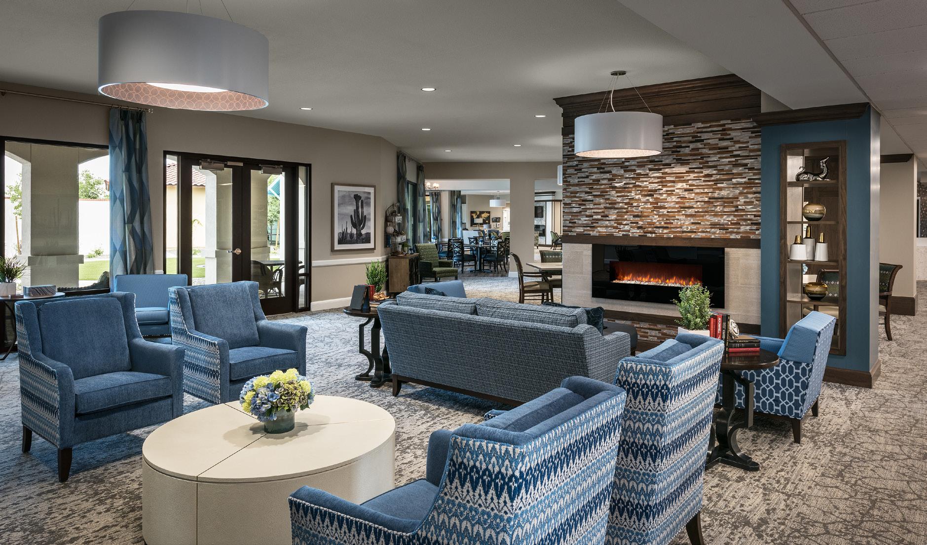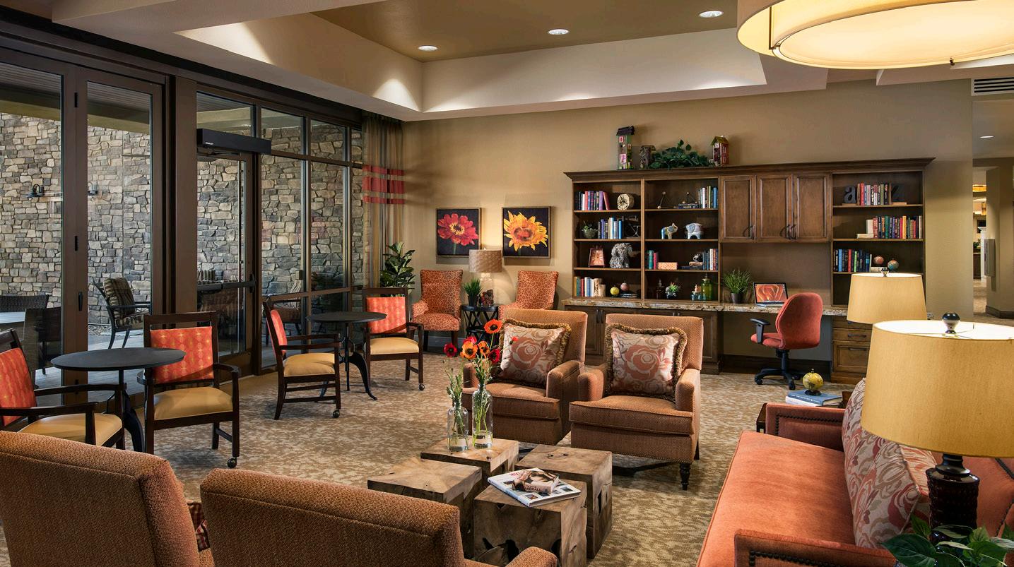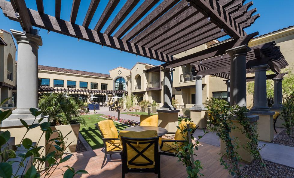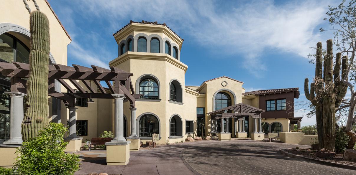 Located in a pedestrian-friendly residential neighborhood close to parks, retail, and dining amenities, Clearwater Ahwatukee offers quality hospitality and healthcare services within a warm, homelike environment. This community provides integrated independent living, assisted living, and memory support to those seeking to age-in-place close to family and friends in the multigenerational community of Ahwatukee. 2-and 3-story buildings house 137 apartmentstyle units. The 40 Memory Support resident suites are divided into 4 separate households. Each household wraps around a centralized living/dining/activity space.