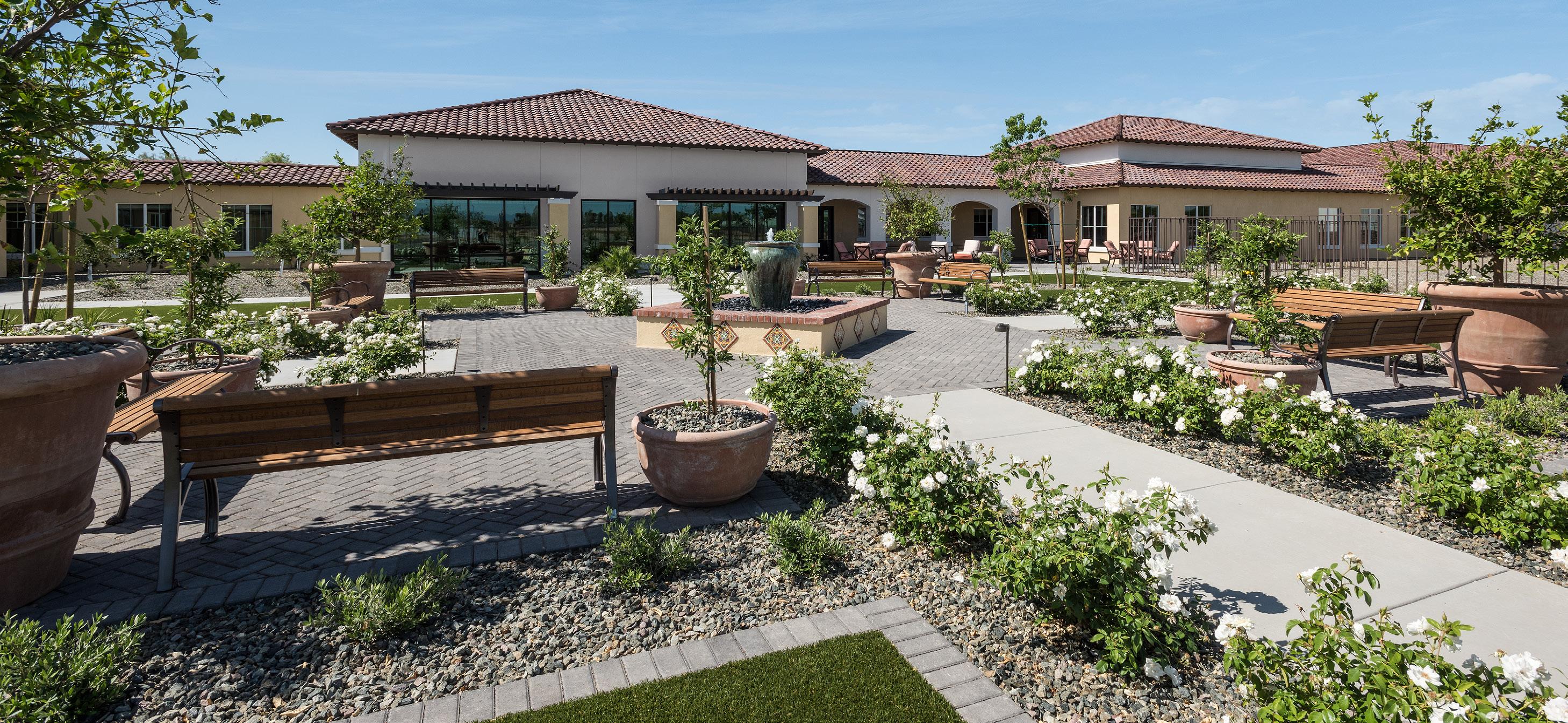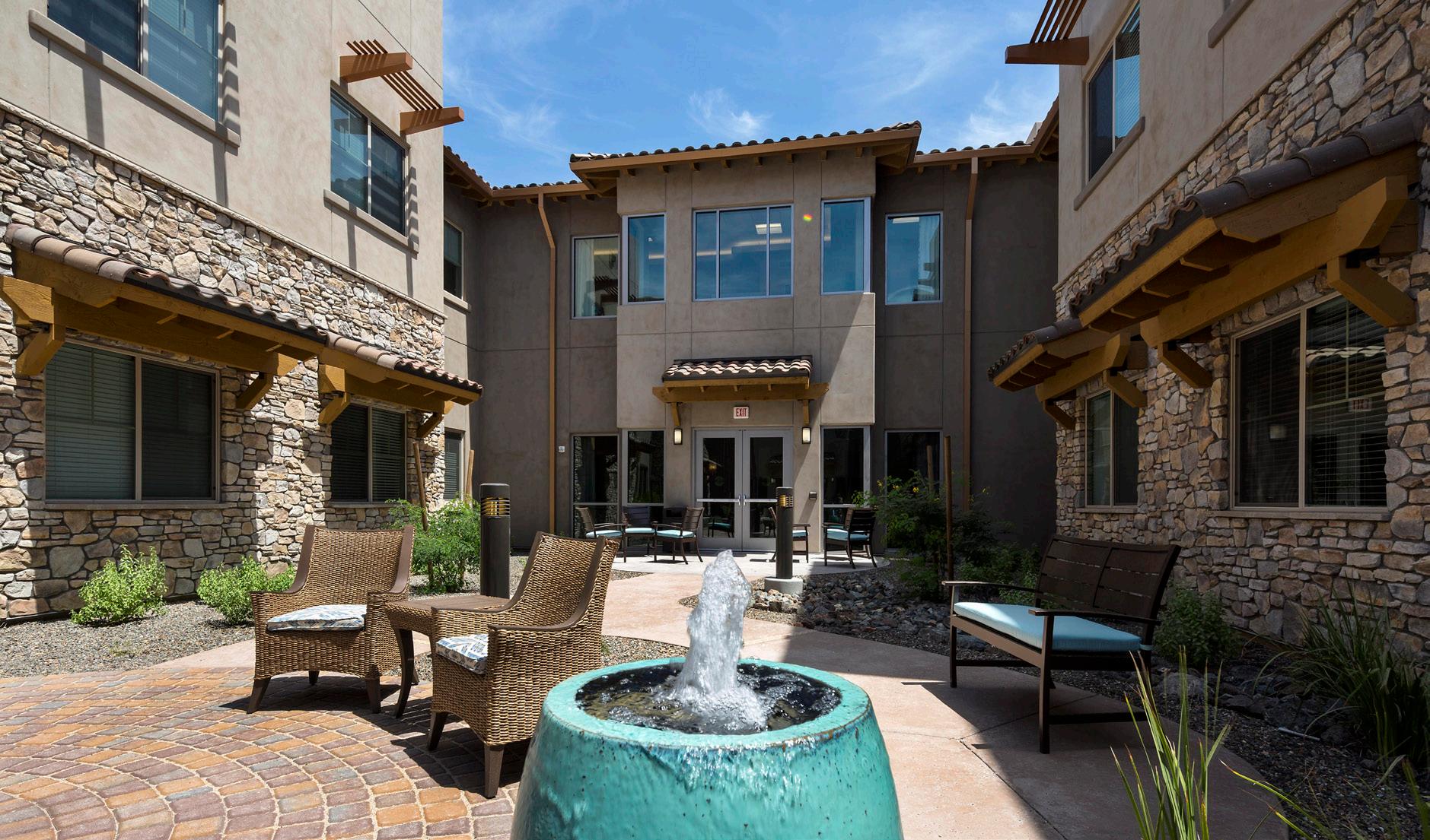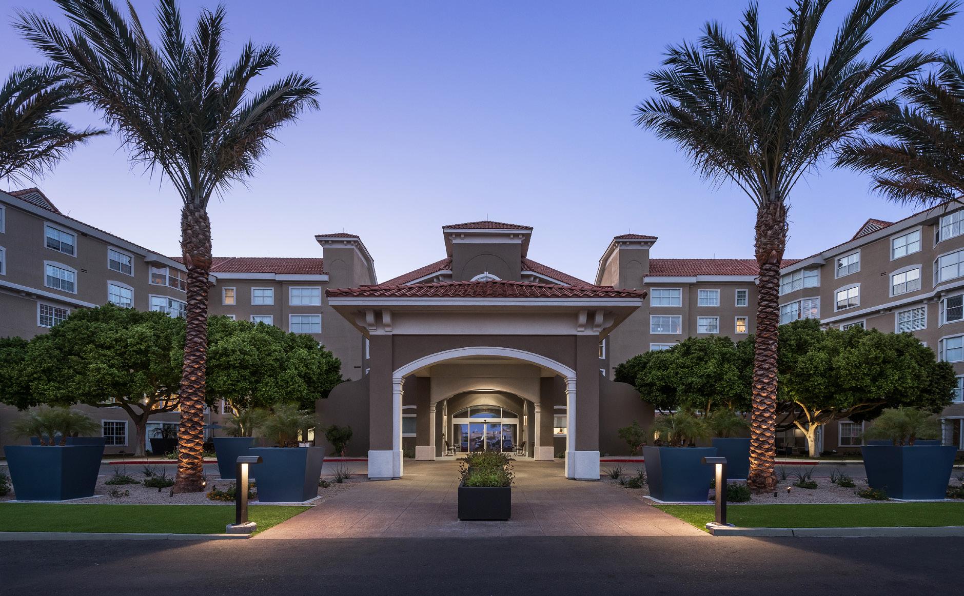 Located in a pedestrian-friendly residential neighborhood close to parks, retail, and dining amenities, Clearwater Ahwatukee offers quality hospitality and healthcare services within a warm, homelike environment. This community provides integrated independent living, assisted living, and memory support to those seeking to age-in-place close to family and friends in the multigenerational community of Ahwatukee. 2-and 3-story buildings house 137 apartmentstyle units. The 40 Memory Support resident suites are divided into 4 separate households. Each household wraps around a centralized living/dining/activity space.