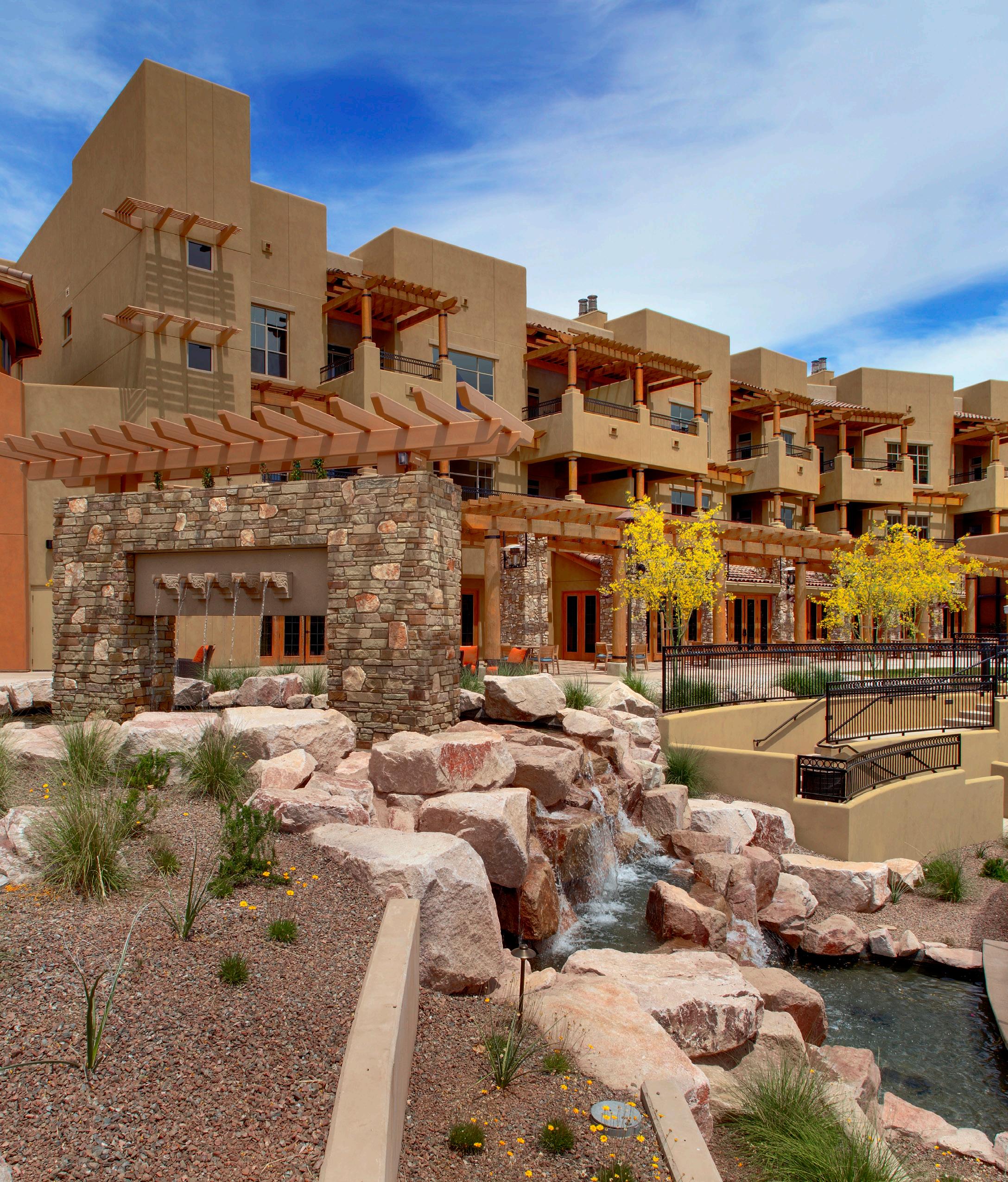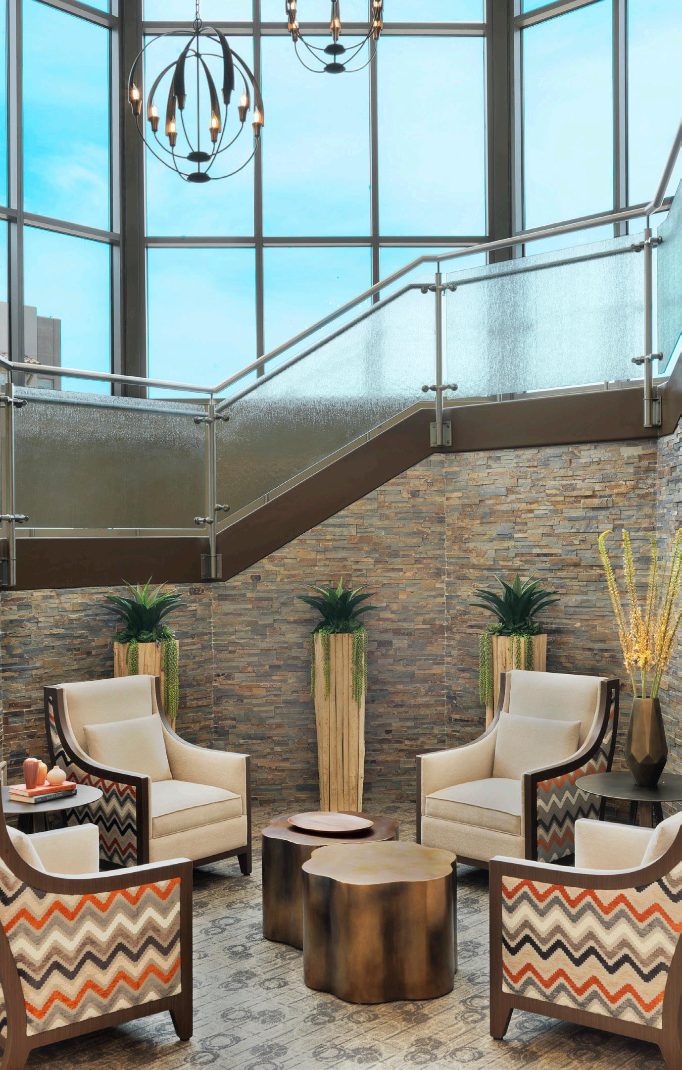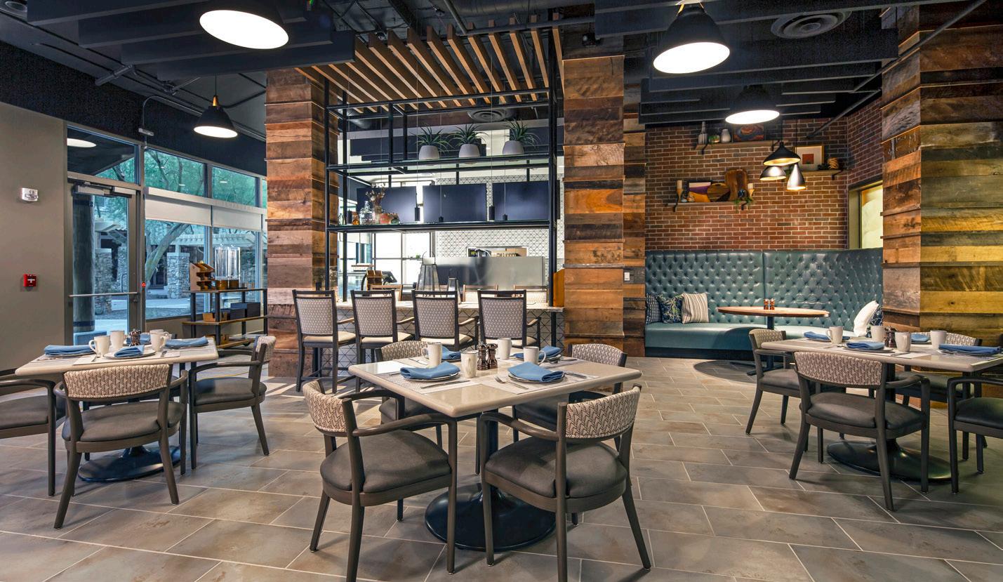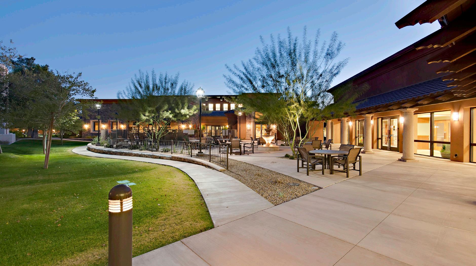 Located in a pedestrian-friendly residential neighborhood close to parks, retail, and dining amenities, Clearwater Ahwatukee offers quality hospitality and healthcare services within a warm, homelike environment. This community provides integrated independent living, assisted living, and memory support to those seeking to age-in-place close to family and friends in the multigenerational community of Ahwatukee. 2-and 3-story buildings house 137 apartmentstyle units. The 40 Memory Support resident suites are divided into 4 separate households. Each household wraps around a centralized living/dining/activity space.