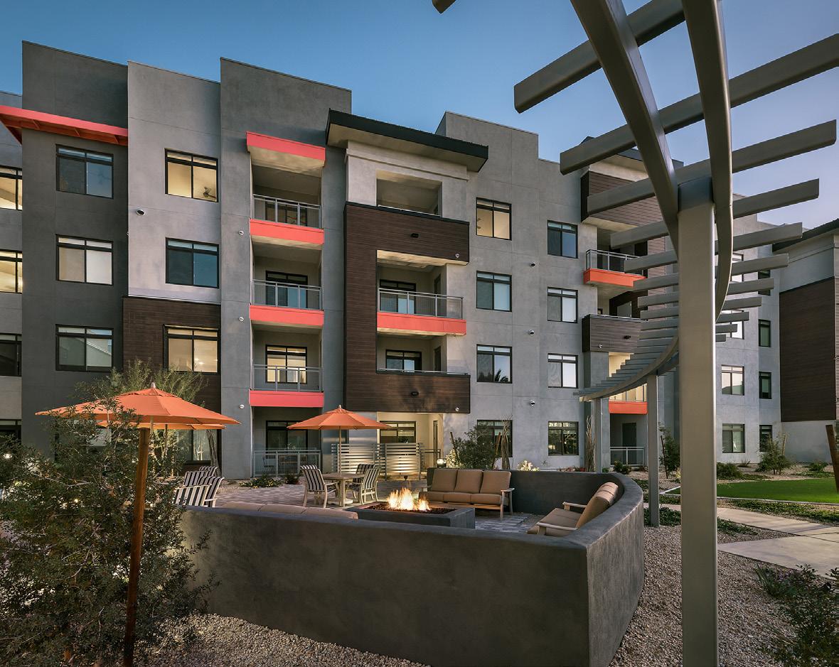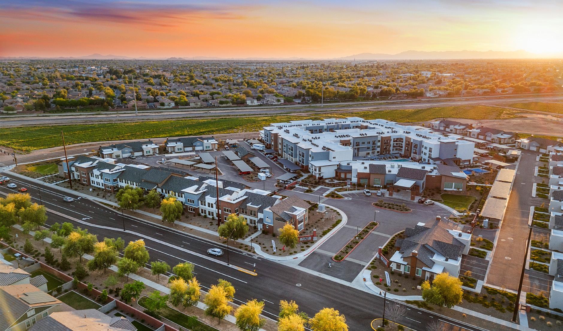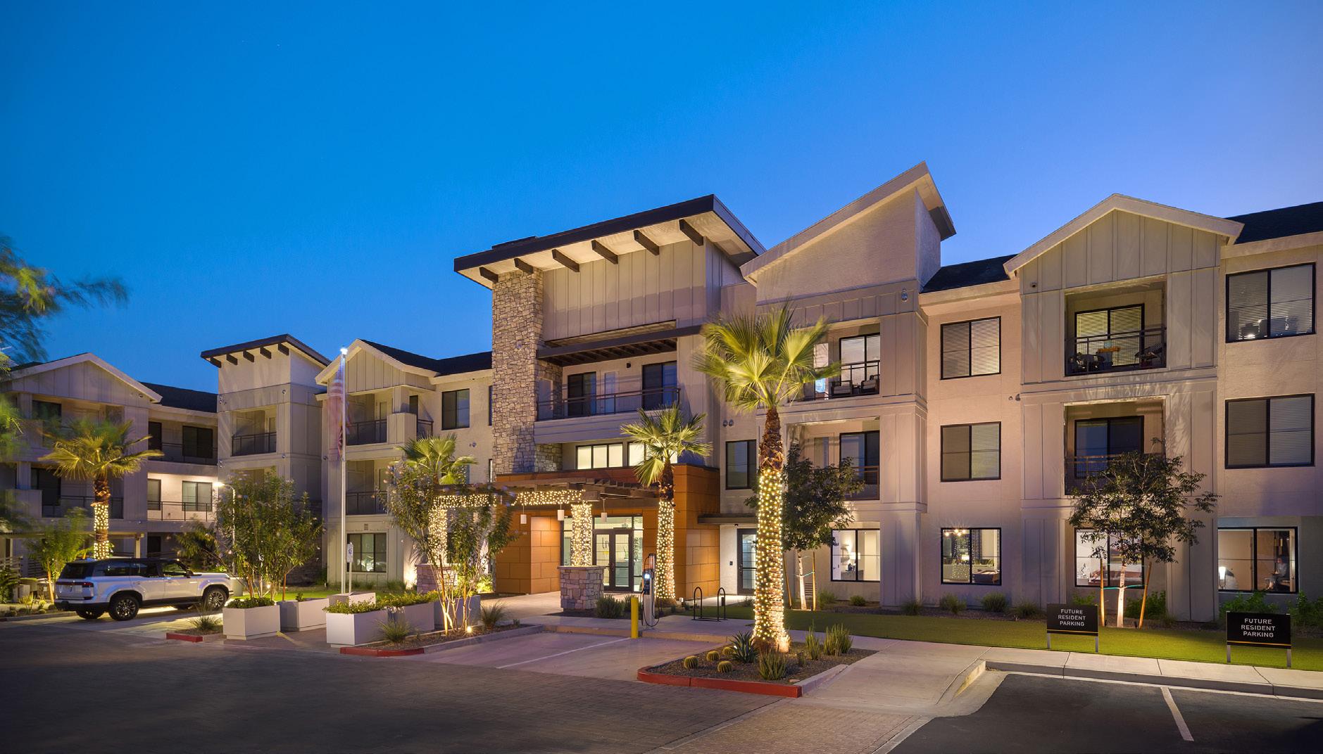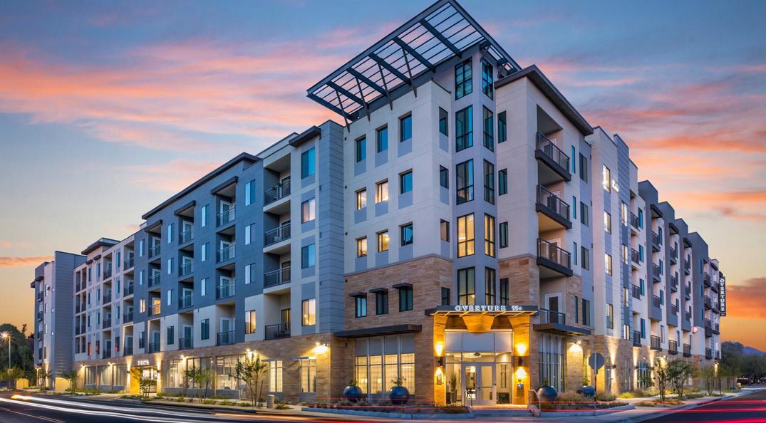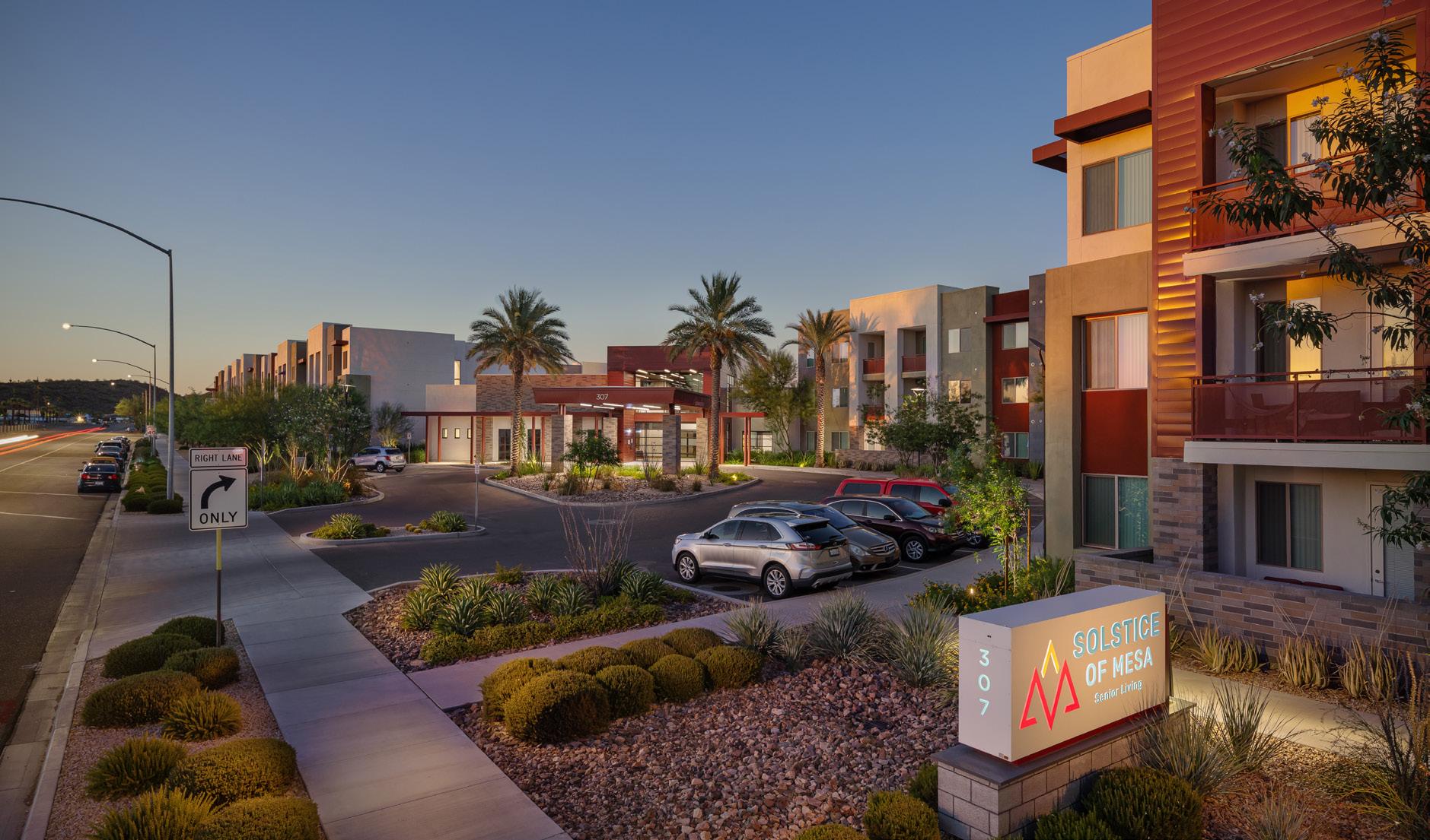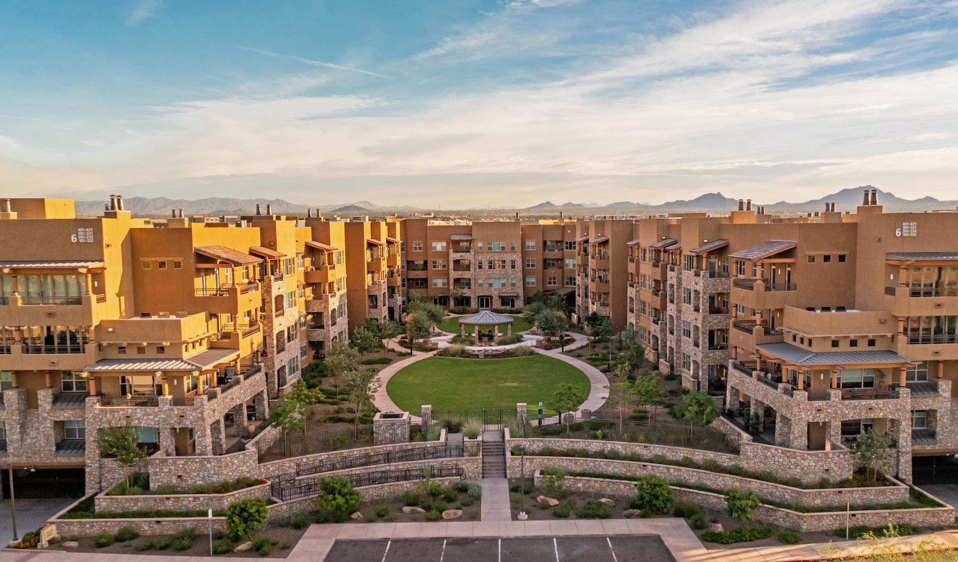 As the fourth community for this client within the greater Phoenix area, Clearwater Mayo Blvd is a 181-unit resortinspired senior living community. It is comprised of 26 high-end casitas, 125 independent/assisted living units, and 30 memory care units. Located off the 101 Freeway, it is integrated into the community near retail, restaurants, and healthcare with pedestrian walkways and outlets. The location is key, neighboring a 2-phase multifamily development, which creates a multi-generational community with a contemporary architectural design.