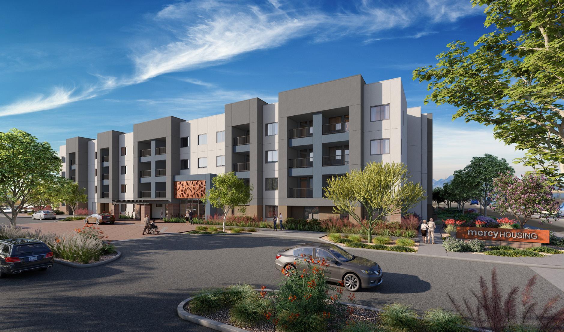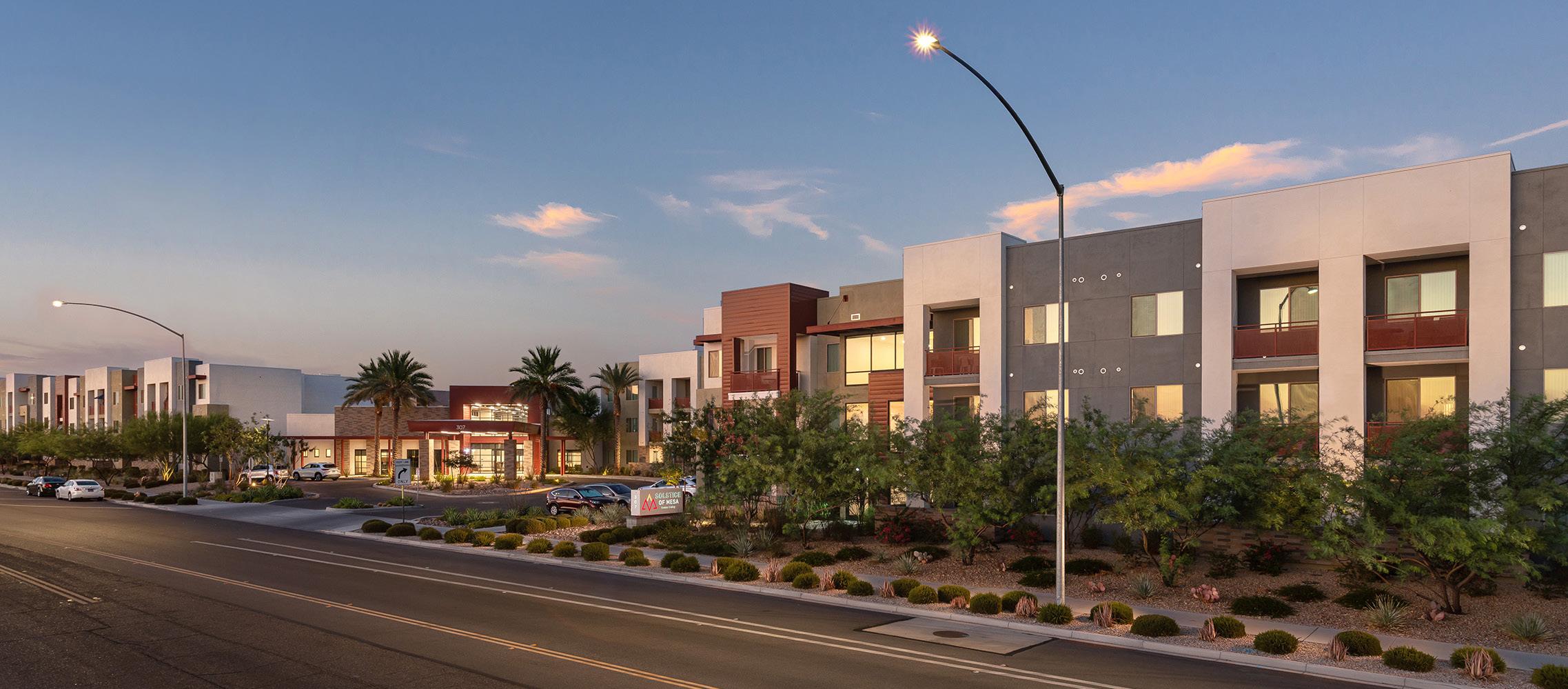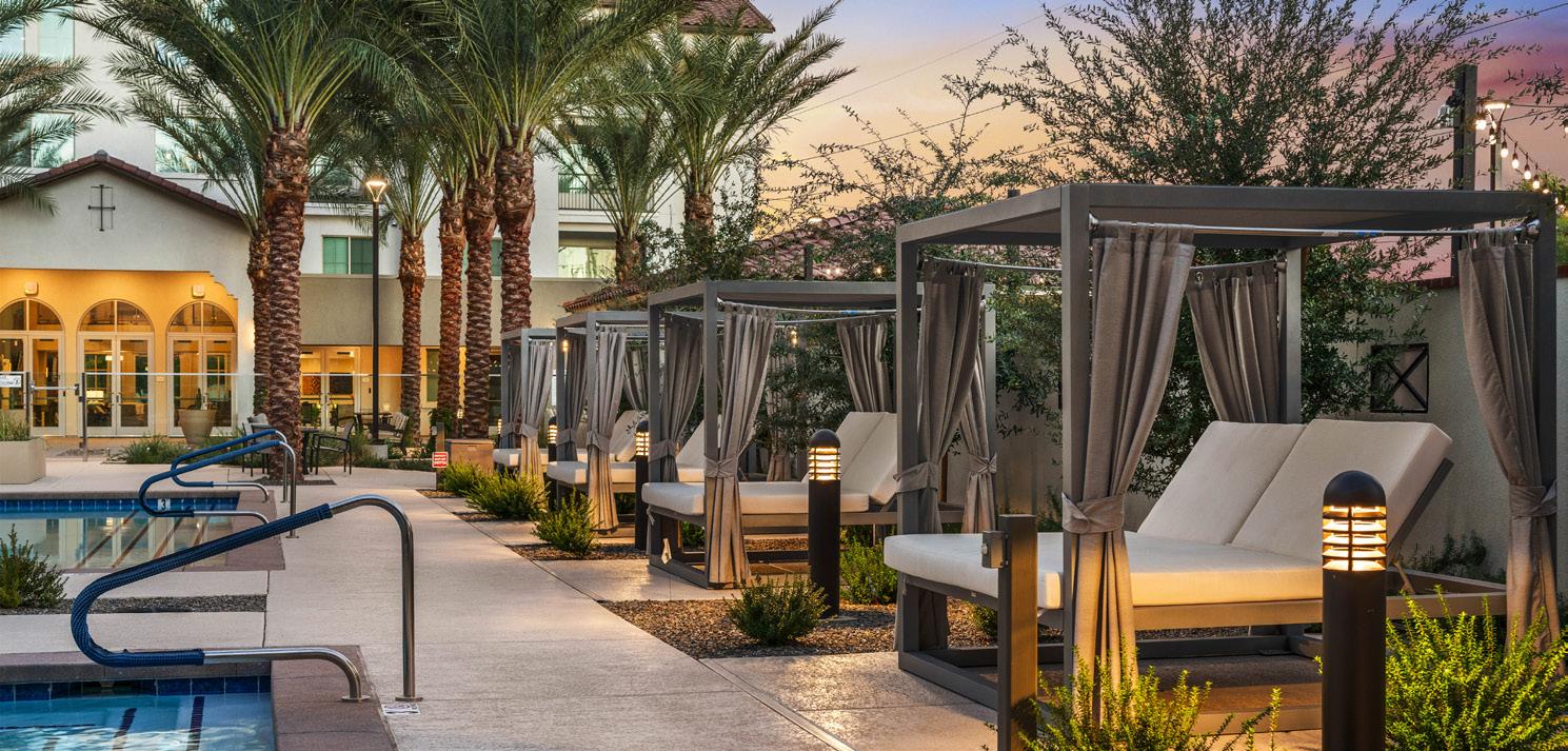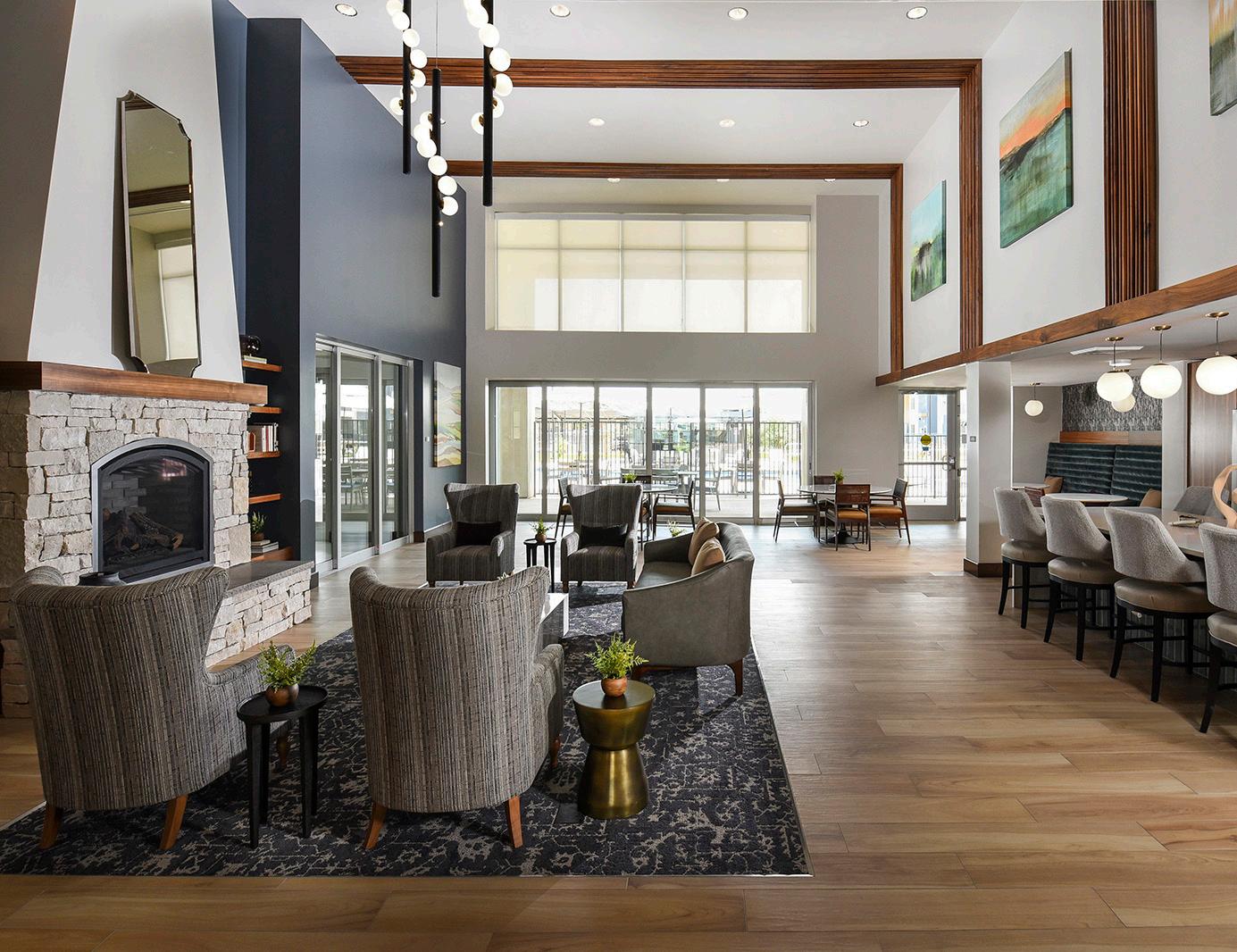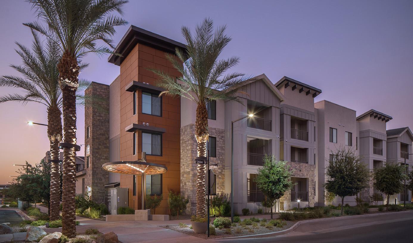 As the fourth community for this client within the greater Phoenix area, Clearwater Mayo Blvd is a 181-unit resortinspired senior living community. It is comprised of 26 high-end casitas, 125 independent/assisted living units, and 30 memory care units. Located off the 101 Freeway, it is integrated into the community near retail, restaurants, and healthcare with pedestrian walkways and outlets. The location is key, neighboring a 2-phase multifamily development, which creates a multi-generational community with a contemporary architectural design.