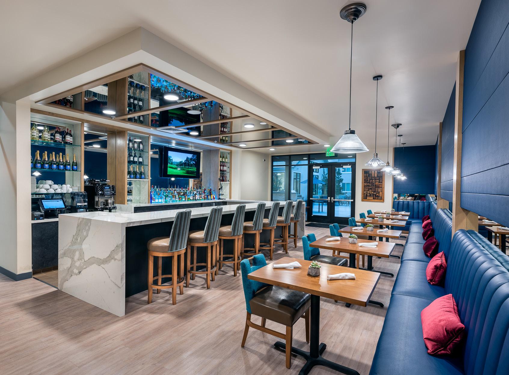 Our client’s goal is to provide quality care and comfort within a resort-style community. Residents enjoy a full-service salon, art studio, private theater, and game room. A variety of tantalizing dining options include a pizza bar, full-service restaurant, outdoor dining, and a grab-and-go food kiosk. For late relaxing evenings, a piano bar offers a place for residents to socialize over cocktails. The dedicated memory support therapy garden has a variety of sensory components. In the garden, specific plants and flowers were selected that attract butterflies and wildlife. There is a free-standing art wall made up of 3form glass specially designed for outdoor painting activities. An additional therapy component is the water table that has an interactive water feature.