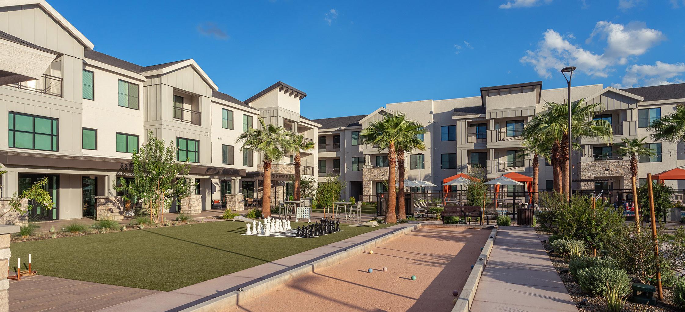 Sagewood provides its residents with an array of amenities that promote healthy lifestyles. These spaces include a fitness center, indoor pool, salon and spa, an art studio, and several activity rooms. All amenities focus on indoor/outdoor living with themed courtyards, a central main courtyard, and an outdoor mixed-use Main Street. This Main Street features loft apartments over dining venues with the option of formal dining, casual, and a café. The 1-story sub-grade parking structure contains 346 parking spaces and resides below the apartment buildings, Main Clubhouse, and HealthyLife Services Clubhouse. The 420-seat Oasis Event Center was designed to accommodate a variety of events, including musical and theatrical performances, concerts, and special events. We recently completed a 101-unit independent living building, an 18 hole putting course, and renovation and expansion of the existing dining.