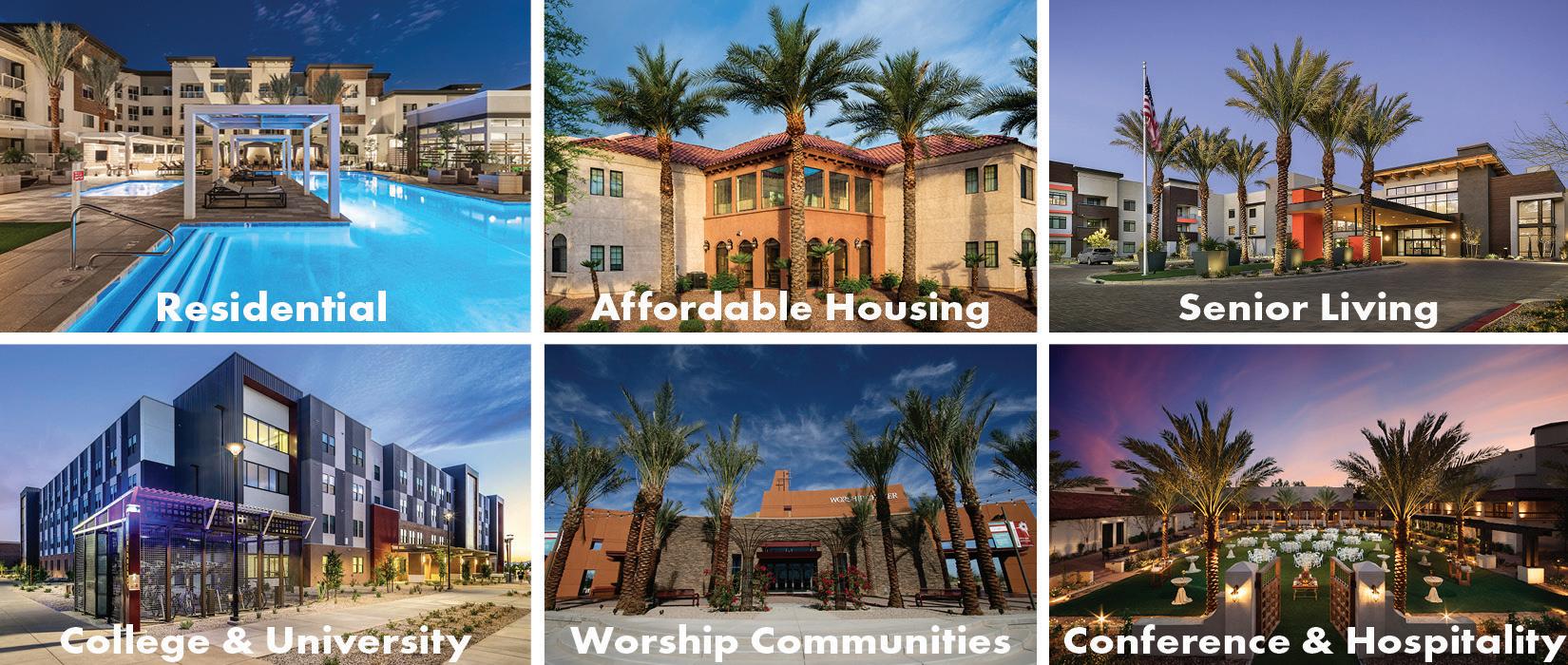 We are experienced in a diverse range of project types across the U.S., such as residential communities, senior living, student housing, mixed-use environments, hotels, resorts, and places of worship.