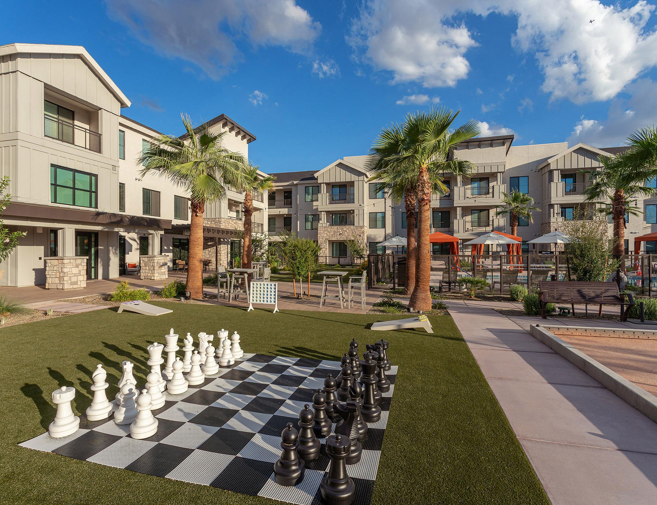 Other outdoor amenities include a resort-style pool with ramadas and fireplaces, a dog park, and courtyards throughout the community. Interior amenities include large living/gathering areas with fireplaces, a bistro, salon, and barbershop. There is a state-of-the-art fitness center, activity rooms, including a game room, art studio, and theater for healthy living and entertainment options.