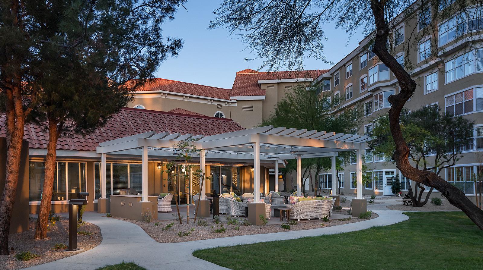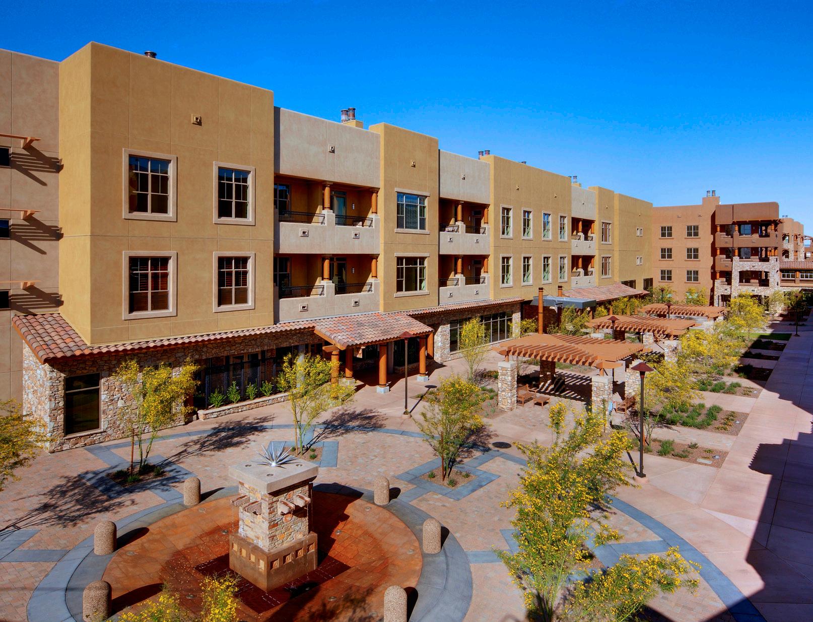 Residing on 33.3 acres, The Colonnade was initially an independent living community that served residents in the northwest valley. Todd & Associates worked with Sun Health to design and expand their campus to include a one-story, intimate assisted living and memory support community on 6.7 acres. The initial expansion included the construction of a 26-unit assisted living neighborhood with a 24-bed memory support program crafted around two distinctive resident neighborhoods. A future phase will add a one-story neighborhood of residences and approximately 22,000 SF.