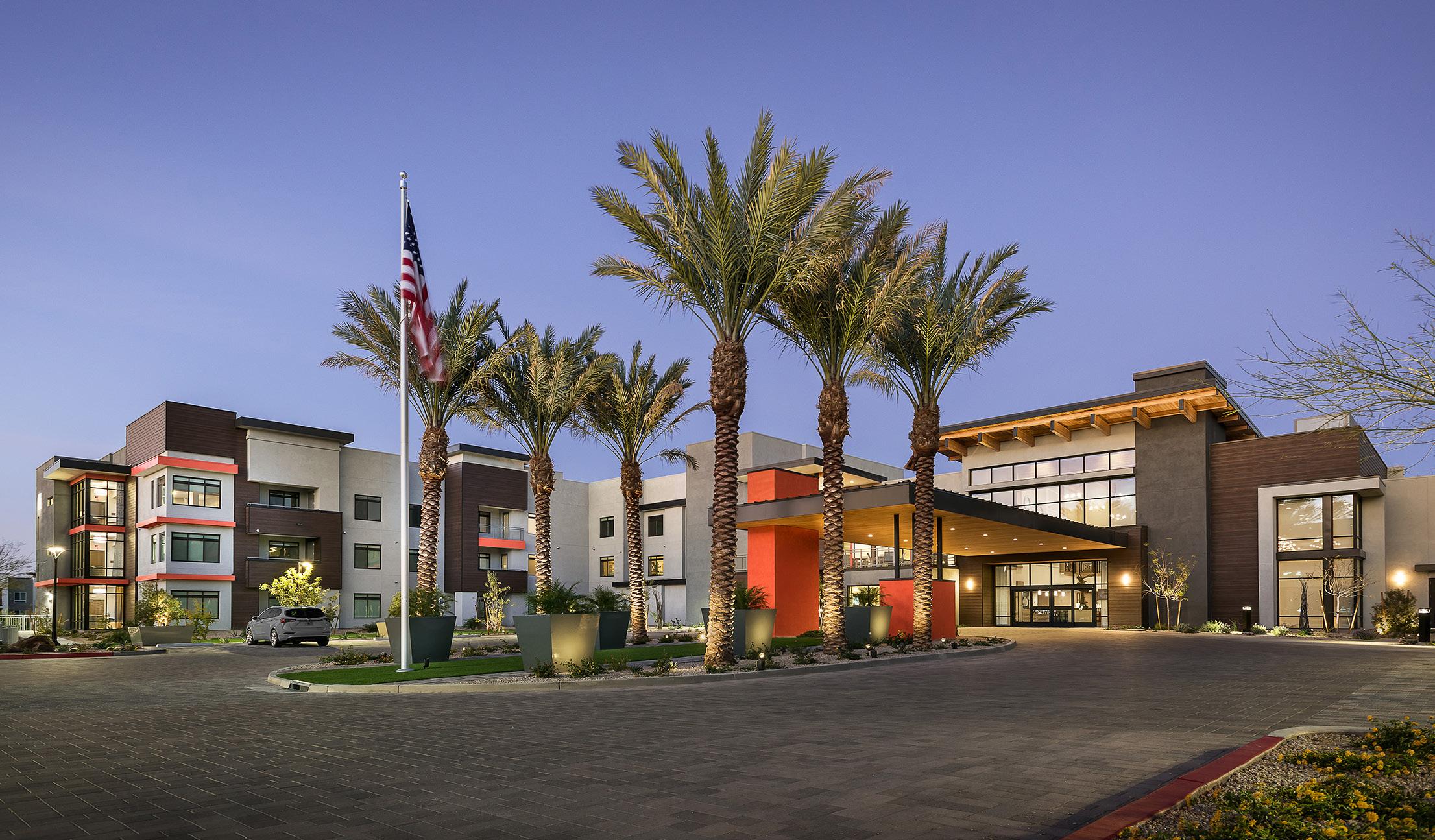 Situated on 3.5 acres, this phase includes the addition of a 4-story, 101-unit independent living building with a 106-space, underground parking garage. This 276,454 SF building features one- and two-bedroom apartment homes with den layouts and scenic patio views of the McDowell Mountains. Amenities include an art studio, game, and activity rooms, along with a lounge named the Owl’s Nest. New executive administrative offices reside on the 1st floor.