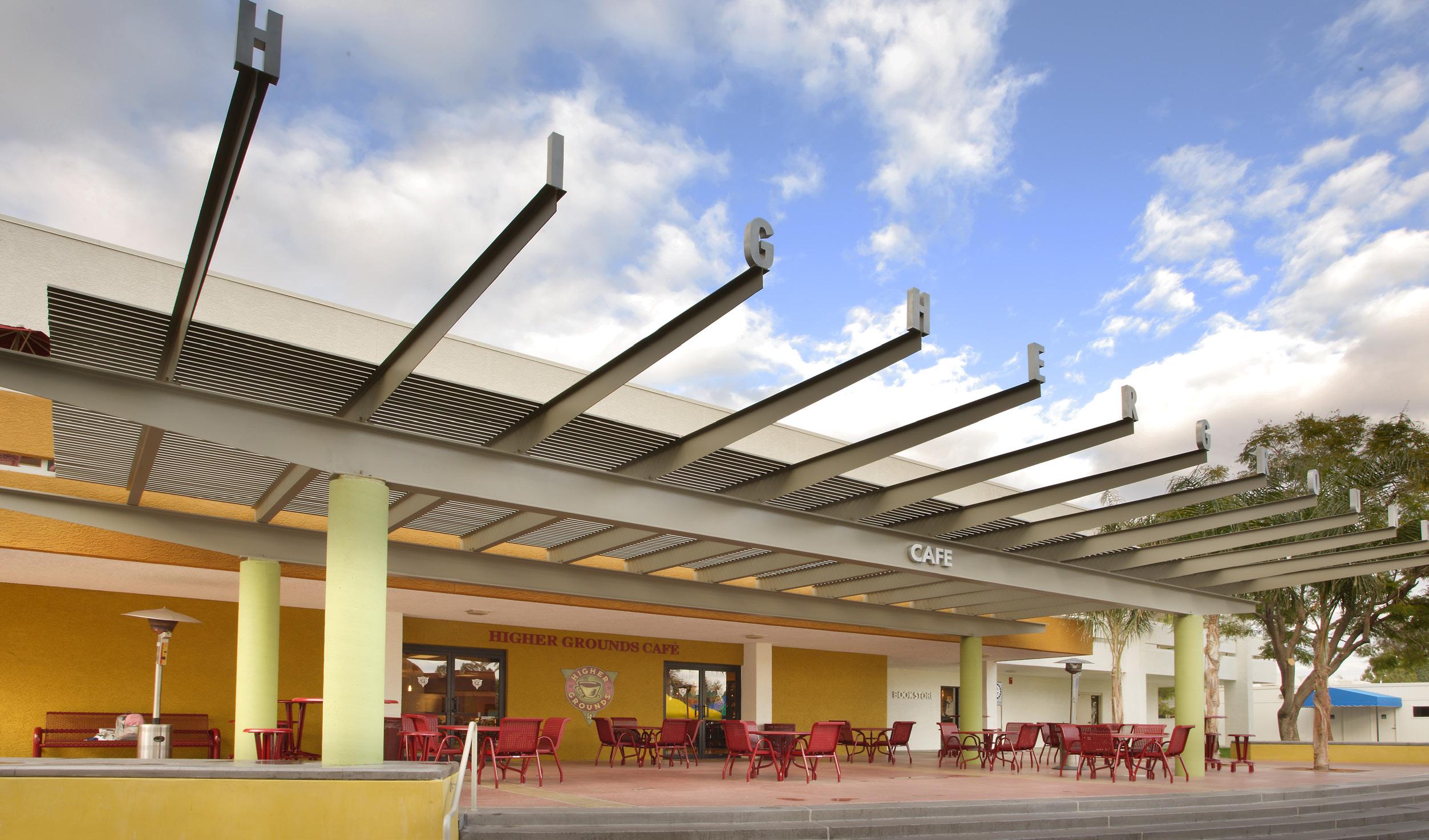 Future phases will include the demolition of two existing buildings, replaced by a pedestrian plaza and large outdoor entertainment space. This space will include a fireplace with raised patio, coffee kiosk and seating areas. A 3,000 SF playground will be designed with shade structures and lush landscape. The chapel will also be renovated adding an outdoor garden in front.