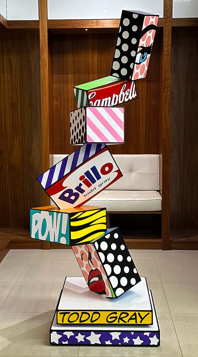 “ This piece was a one off. It was inspired by Lichensteins ‘entablatures’ series of prints. It was (and is) a purely abstract 3-D sculpture using three dimensional design elements like rods and globes.... I’ve always found this piece fun and intriguing with lots of potential for an entire series of work.”