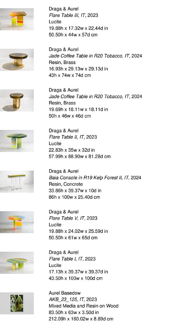 Their latest collection, the Flare Series exclusive to Todd Merrill Studio, epitomizes the duo’s deep dive into the interplay of color and light refraction. Through a rigorous study of materials and their capacity to come alive with color and light, Draga & Aurel have created a material process that imitates internal illumination created as opposing colors react to ambient light . Their mastery in epoxy resin artistry is globally acknowledged, and in this project, they push their creative boundaries further by embracing Lucite. This acrylic material undergoes a painstaking process, with skilled artisans from Lake Como collaborating closely with the duo in their studio.