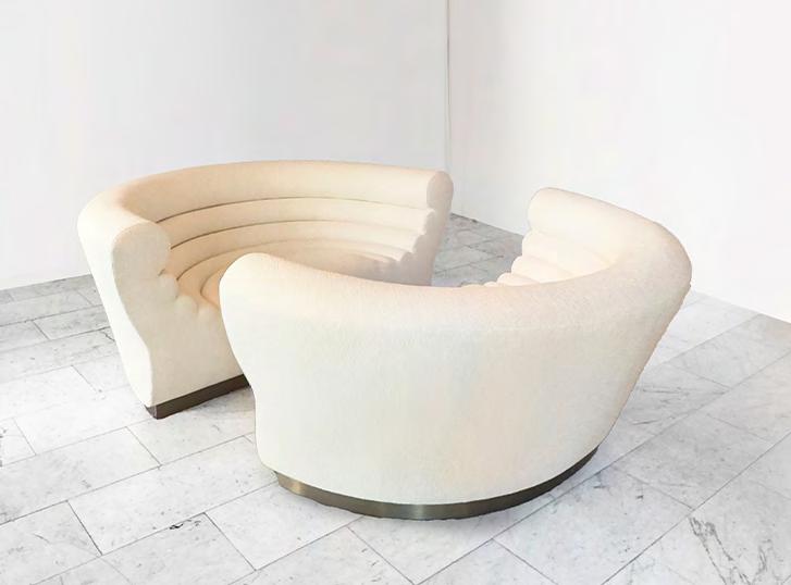 Proportioned for today’s lifestyle with a focus on comfort and generous scale, Merrill’s designs include the Tufted Series, the Channel Tufted Racetrack Sofa and Sugar Bowl Settee.