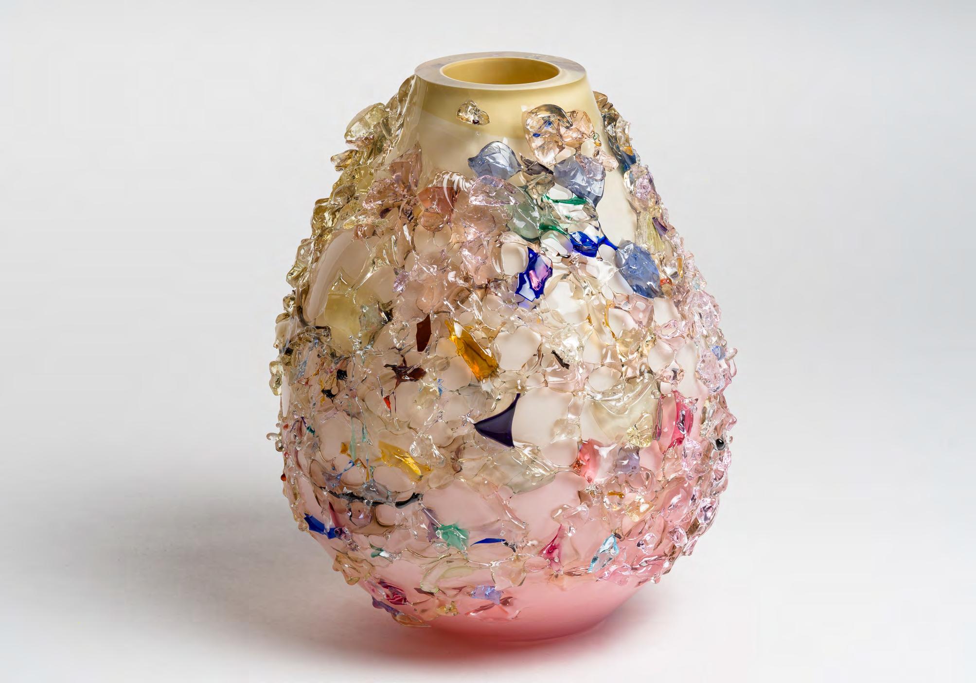 Amsterdam-based artist and designer Maarten Vrolijk believes that art should make people’s everyday lives more beautiful through the many little details that evoke the unexpected. While strongly influenced by the natural world, Vrolijk is not on a quest to expose an imitation of the “real” world, but rather, is on an exploration of the simple, unequivocal, and often overlooked aspects: color, form, delicacy, strength, transparency, ephemerality, that provide a map to the fascinations we gravitate to when experiencing the world around us. The volatility in accomplishing the exceptional thickness of his glass vases creates a risky balance between strength and delicacy. The thermal stress caused when trying to equalize the interior and exterior temperature of the cooling vessels, is fraught with the propensity for breakage. The success of Vrolijk’s works lie in the crystalline clarity posed against their substantial physical impact.