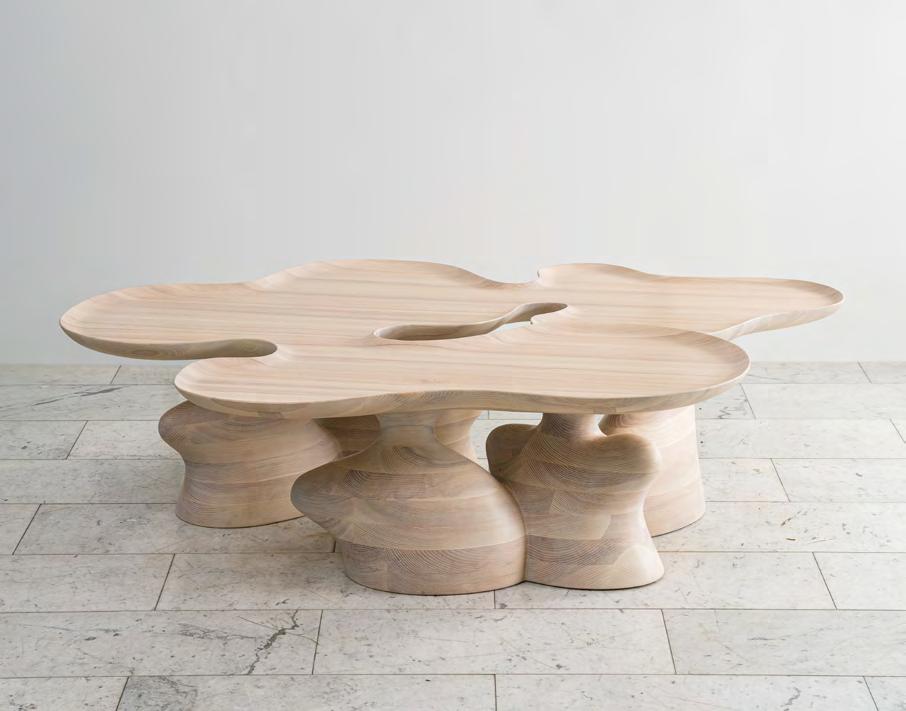 In the past 5 years Korean artist Yun Hwan Kim has made a significant mark in the world of collectible design. His bronze “Unintended Console Table” continues his material exploration. With his distinctive line of works called the “Unintended Series,” which includes cabinets, tables, screens, mirrors, and lighting, Kim has captivated audiences with his remarkable craftsmanship and artistic vision. What sets Kim’s creations apart is their irregular, improvisational, and organic nature. His forms vaguely resemble the silhouette of spilled water, embodying a sense of fluidity and topography. Large contoured shapes define his pieces, interconnecting like tributaries or branch-like forms, creating an intricate and visually captivating composition. The fusion of these elements results in furniture that blurs the boundaries between function and art, challenging conventional notions of design. In his latest works, Kim has ventured beyond wood and started incorporating cast aluminum and bronze. By mimicking the hand-carved wood forms in these high-end materials, he has firmly established his presence in the contemporary realm. This exploration of new mediums and materials adds a layer of sophistication and experimentation to his art, pushing the boundaries of his creative expression.