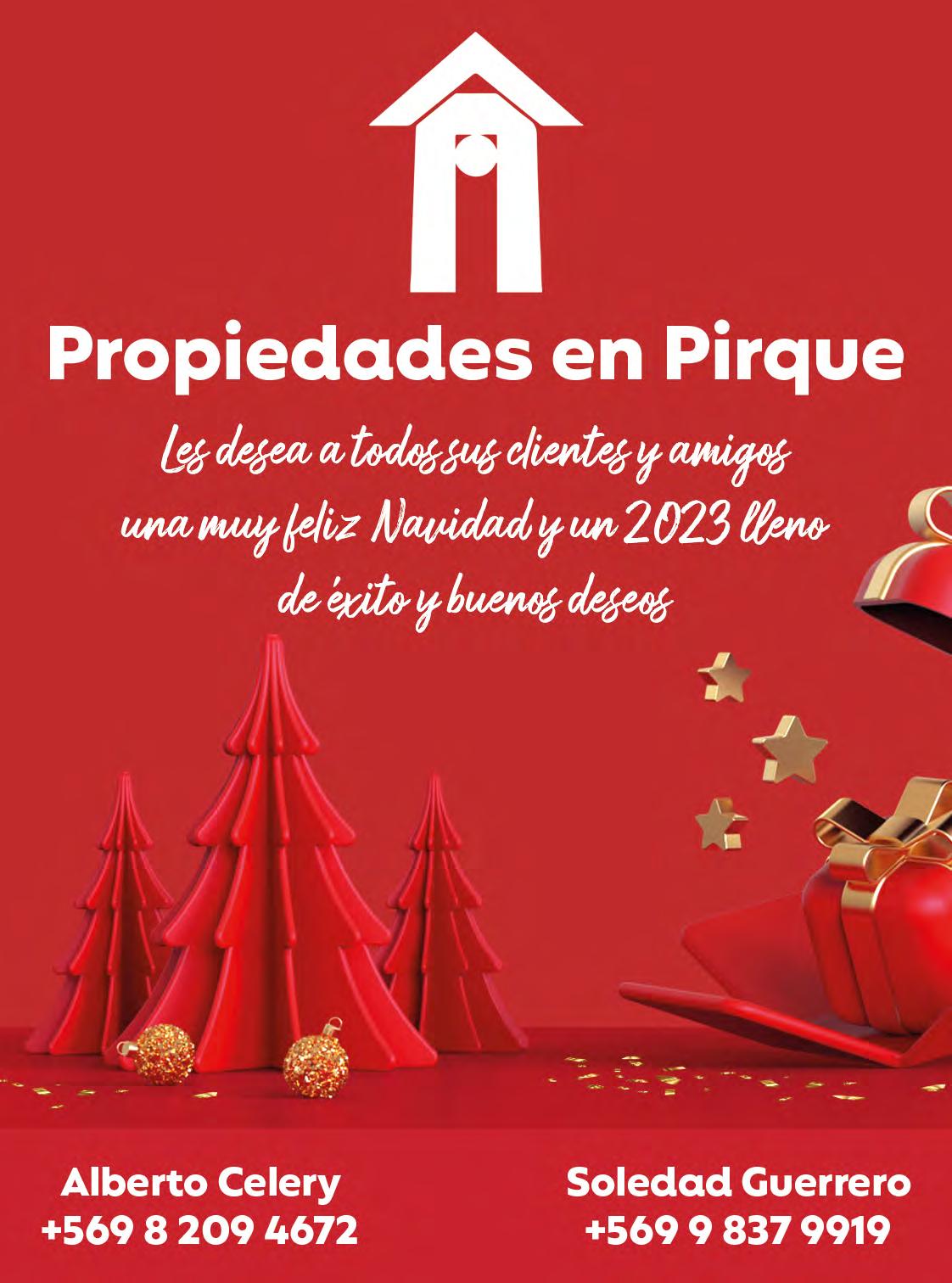 Como equipo de revista Todo Pirque no podemos dejar de agradecer por los 26 años de existencia, circulación y presencia de nuestra revista en los hogares de los pircanos, a todos los avisadores que aparecen mes a mes y a los colaboradores que llenan las páginas de un contenido especial que solo en Pirque pasa, a todos y cada uno, ¡mil gracias y los mejores deseos para esta Navidad y un año 2023 mejor en todos los sentidos!