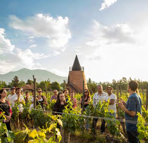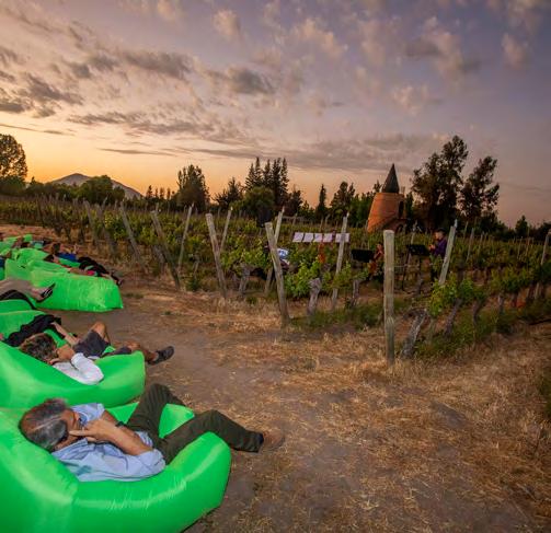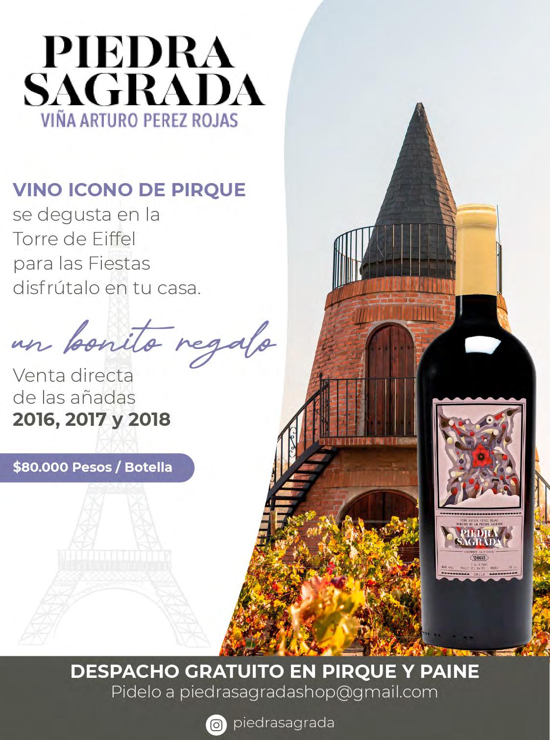 Tras establecerse como Grand Cru en Francia —lo encuentras en el Jules Verne, restaurante estrellado de la Torre Eiffel— Piedra Sagrada inaugura veladas únicas en Pirque. Jaime Escudero, Gloria Moya (Corfo) y Alicia Ortiz (Enoturismo Chile) fueron algunos de los privilegiados que iniciaron el primer tour de la Viña Arturo Pérez Rojas.