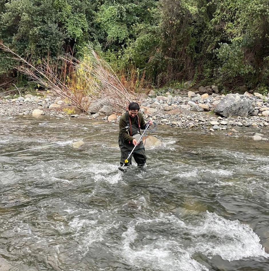 Guardaparque Osvaldo Herrera, registrando datos del caudal del Río Clarillo