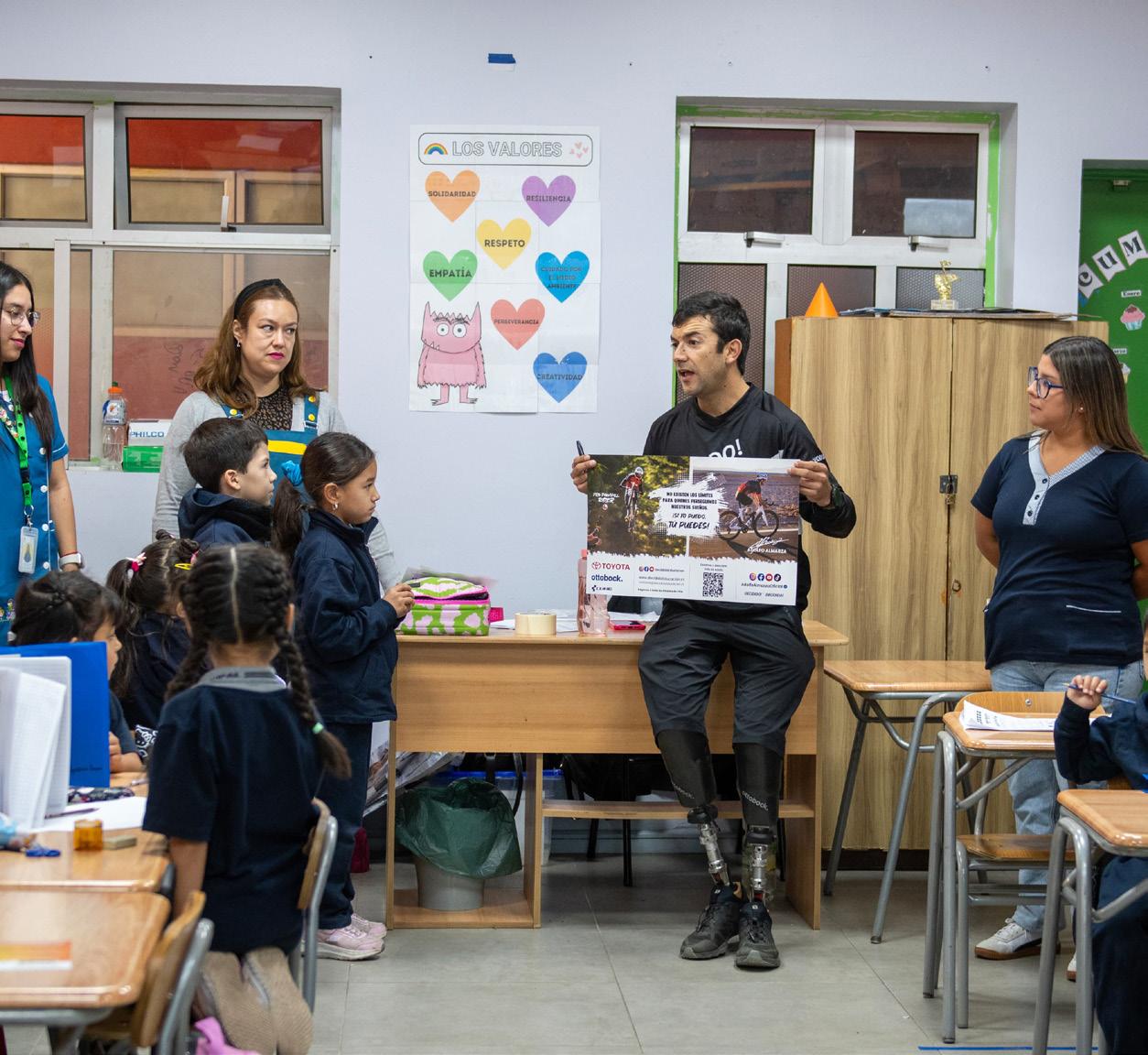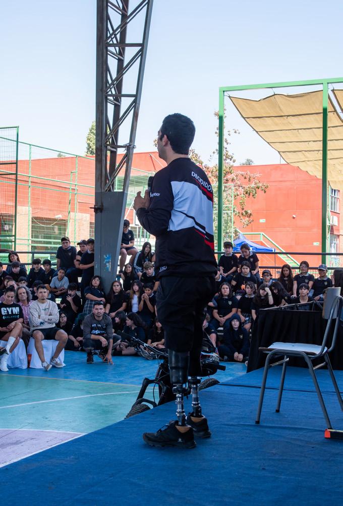 Desde los más pequeños de Play Group hasta los alumnos de enseñanza media, todos los asistentes pudieron escuchar de primera mano el testimonio de Almarza, quien perdió ambas piernas en un accidente a los 12 años y, pese a ello, se convirtió en ciclista profe-