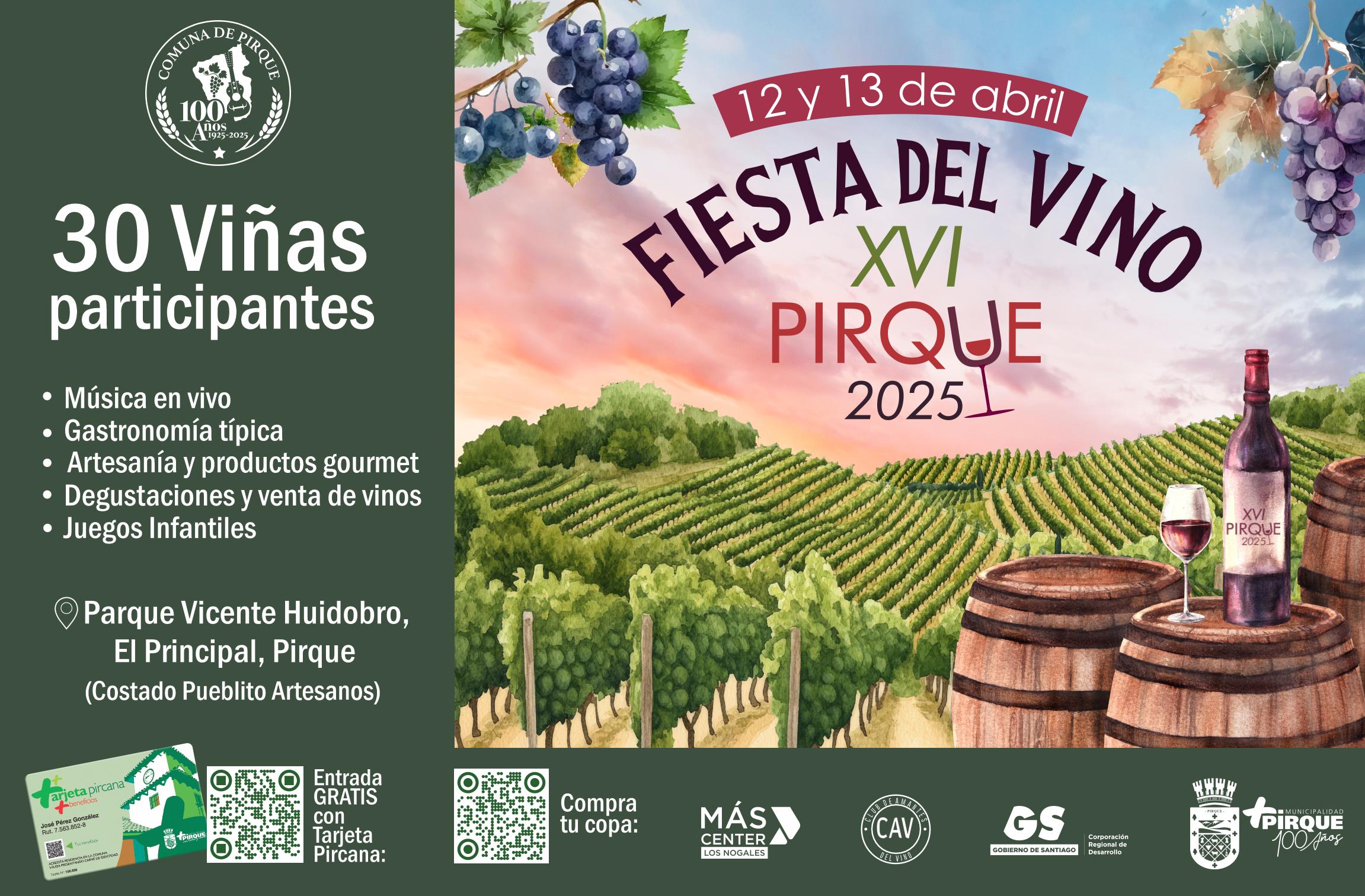 Porque Pirque es tierra de tradiciones, los días 12 y 13 de abril la comuna se convertirá en el epicentro de la viticultura nacional con la celebración de la XVI Fiesta del Vino