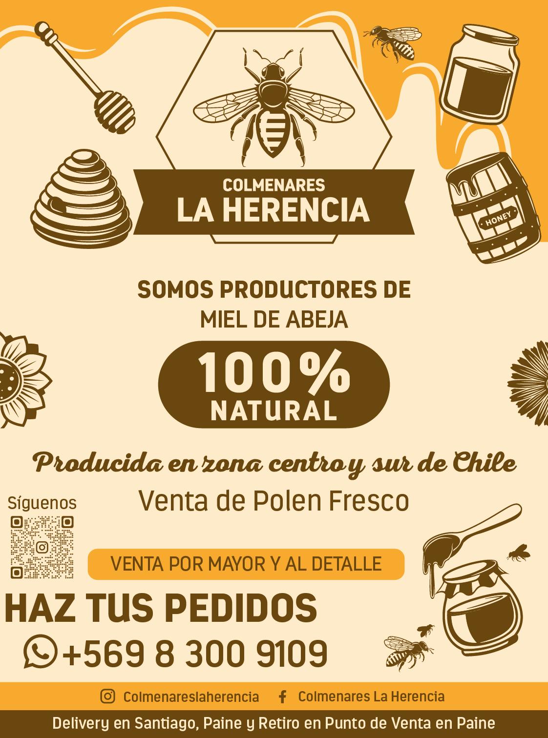 Puedes comprar miel, polen y jalea real a través de su Instagram. Hacen despachos en Santiago, Paine y ofrecen retiro en punto de venta.