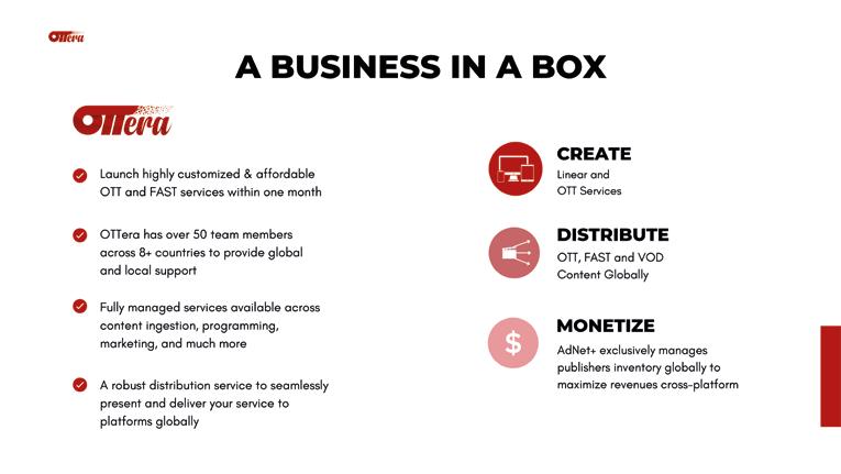 Ser un “verdadero socio” significa que OTTera proporciona “la infraestructura completa para crear aplicaciones, canales rápidos, distribuirlos en todas las plataformas principales y también monetizarlos”, algo en lo que trabajan continuamente para crecer aún más.
