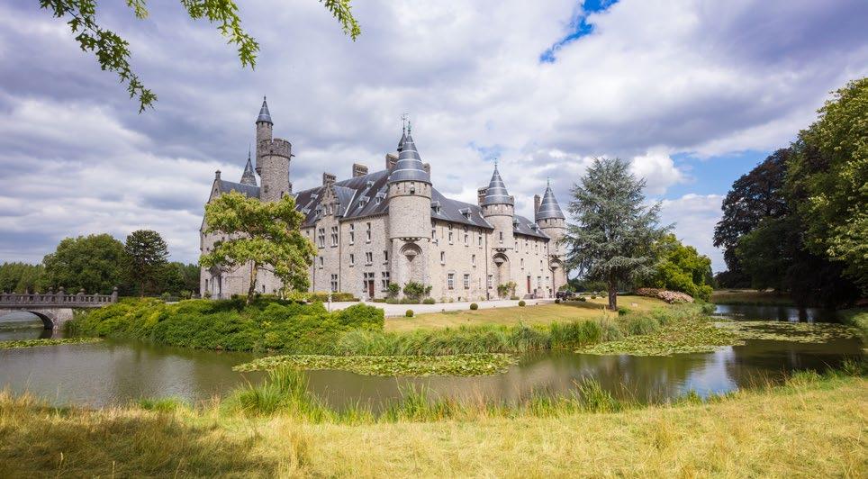 door de tijd en een reis rond de wereld. De neogotische interieurs en woonvertrekken beneden tonen je hoe een adellijke familie ruim honderd jaar geleden leefde. Langs een statige trap klim je vervolgens naar de eerste verdieping, waar je kan binnenkijken in de familiekapel. Je ziet er ook de kamer waar Albert en Elisabeth verbleven. In aparte ruimtes kan je genieten van de collecties van Jean en Roland van Caloen, twee vroegere kasteelheren die verwoede kunstverzamelaars waren. Je ziet er schitterend werk uit de middeleeuwen, maar ook Aziatische en Afrikaanse kunst.