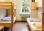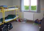 Er zijn 2 eenpersoonsslaapkamers, 1 kamer voor 2 personen, 6 voor 4 personen en 6 voor 8 personen. Alle kamers zijn toegankelijk, maar in de kamer voor 2 personen heb je geen opstelruimte naast het bed. In alle kamers samen zijn er minstens 26 toegankelijke bedden (minstens 2 toegankelijke bedden per kamer van 4 of 8 personen). Er is ook een toegankelijke slaapzaal zonder bedden. De 2 badkamers op de gang hebben een inrijdbare douche met douchezit, beugel en voldoende opstelruimte. De wastafel is onderrijdbaar.