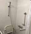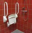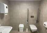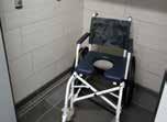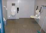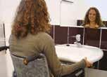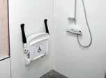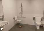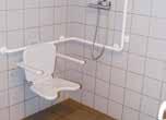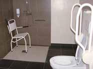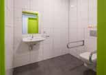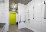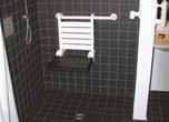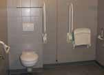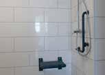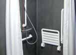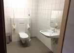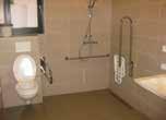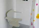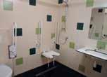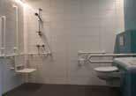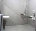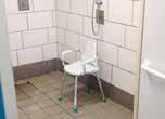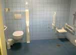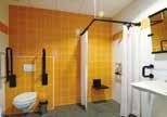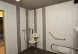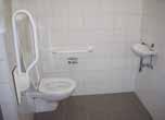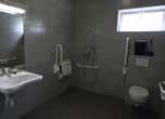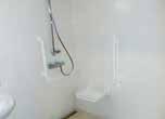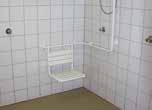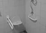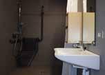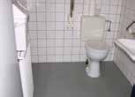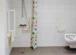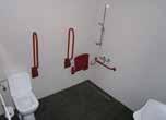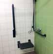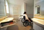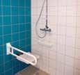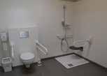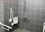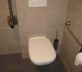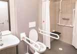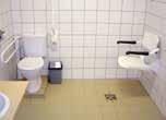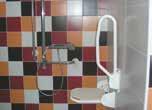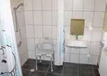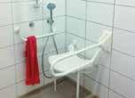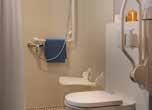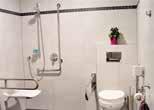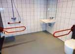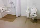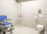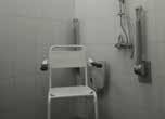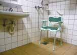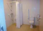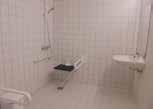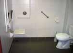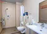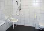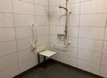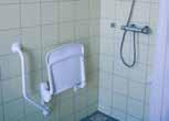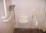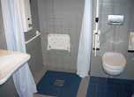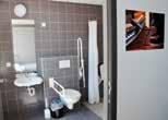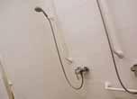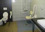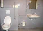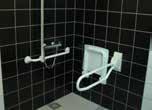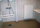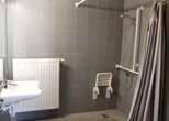 bedden (foto 2). 4 van die kamers hebben een eigen aangepaste badkamer. Bij de andere kamers kan je gebruik maken van een aangepaste badkamer op de gang. Alle aangepaste badkamers hebben een inrijdbare douche met zitje en beugels. Meestal is er voldoende opstelruimte naast, voor en schuin voor het zitje (foto 3). Enkel in de badkamer van kamers 207 en 213 is de ruimte voor of naast het zitje licht beperkt. Het toilet heeft telkens voldoende opstelruimte en beugels. De wastafel is onderrijdbaar. Extra