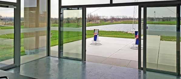 Toegangspad, ingang en onthaal Achter de deur naar de receptie en het café is er een versmalling, maar als iemand de deur open houdt is de doorgang goed bruikbaar.