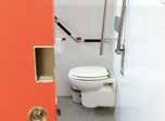 In de toiletten in de gemeenschappelijke aangepaste badkamers op de derde en vierde verdieping heb je voldoende draai- en opstelruimte. Beugels zijn voorzien.