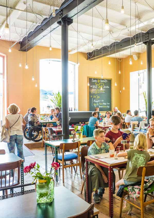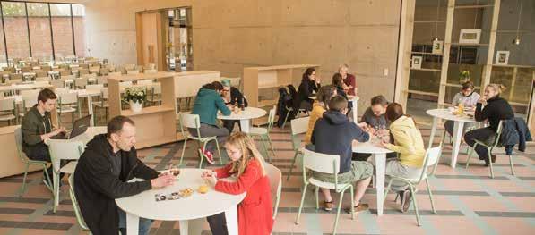 Eetzaal / multifunctionele ruimte Je ontbijt in het café. Verschillende tafels zijn bereikbaar met de rolstoel. De tafels zijn beperkt onderrijdbaar.
