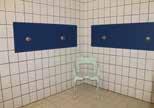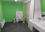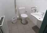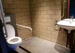 1 toegankelijke kamer voor 2 rolstoelgebruikers vlakbij de aangepaste badkamer op de gang. In feite zijn echter alle lokalen toegankelijk en bruikbaar als slaapzaal. Bedden zijn niet voorzien. De badkamer heeft een inrijdbare douche met zitje en voldoende opstelruimte naast, voor en schuin voor het zitje. Beugels zijn voorzien (foto 3). Het toilet heeft beugels en voldoende opstelruimte, de wastafel is onderrijdbaar.