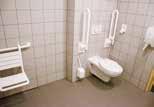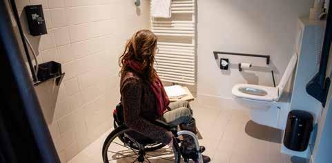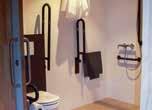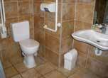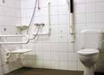 De aangepaste toiletten bij de bar en op de verdiepingen hebben voldoende opstelruimte en beugels. Slaapkamer en badkamer