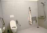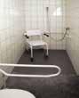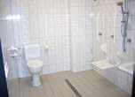 Naast het toilet van de aangepaste badkamer (zie onder) is er nog een aangepast toilet met voldoende opstelruimte en beugels (foto 2).