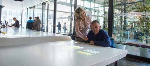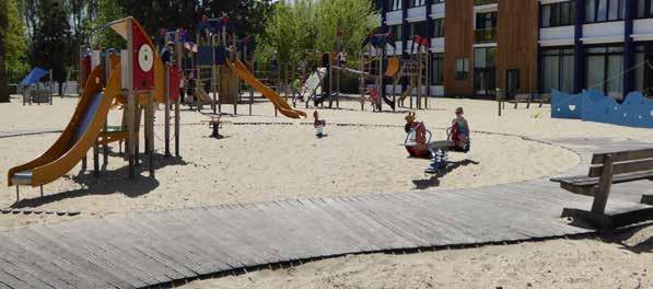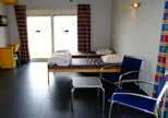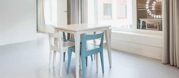 Looproutes en niveauverschillen Alle ruimtes liggen op de benedenverdieping of zijn bereikbaar met de ruime lift. De doorgangen zijn voldoende breed. Eetzaal / multifunctionele ruimte Er is voldoende circulatieruimte in alle ruimtes. De tafels zijn onderrijdbaar. Het terras is drempelloos bereikbaar. De ondergrond is er deels verhard. De zelfkookkeuken heeft een volledig onderrijdbaar gedeelte.