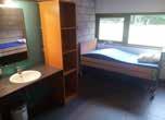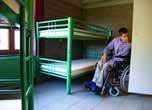 De 2 grote toegankelijke slaapzalen zijn ook onder te verdelen in 4 kleinere zalen. Samen hebben ze minstens 8 toegankelijke bedden. De bedden zijn laag. In de gemeenschappelijke badkamer vind je een inrijdbare douche met zitje, beugels en voldoende opstelruimte. De wastafel is onderrijdbaar.